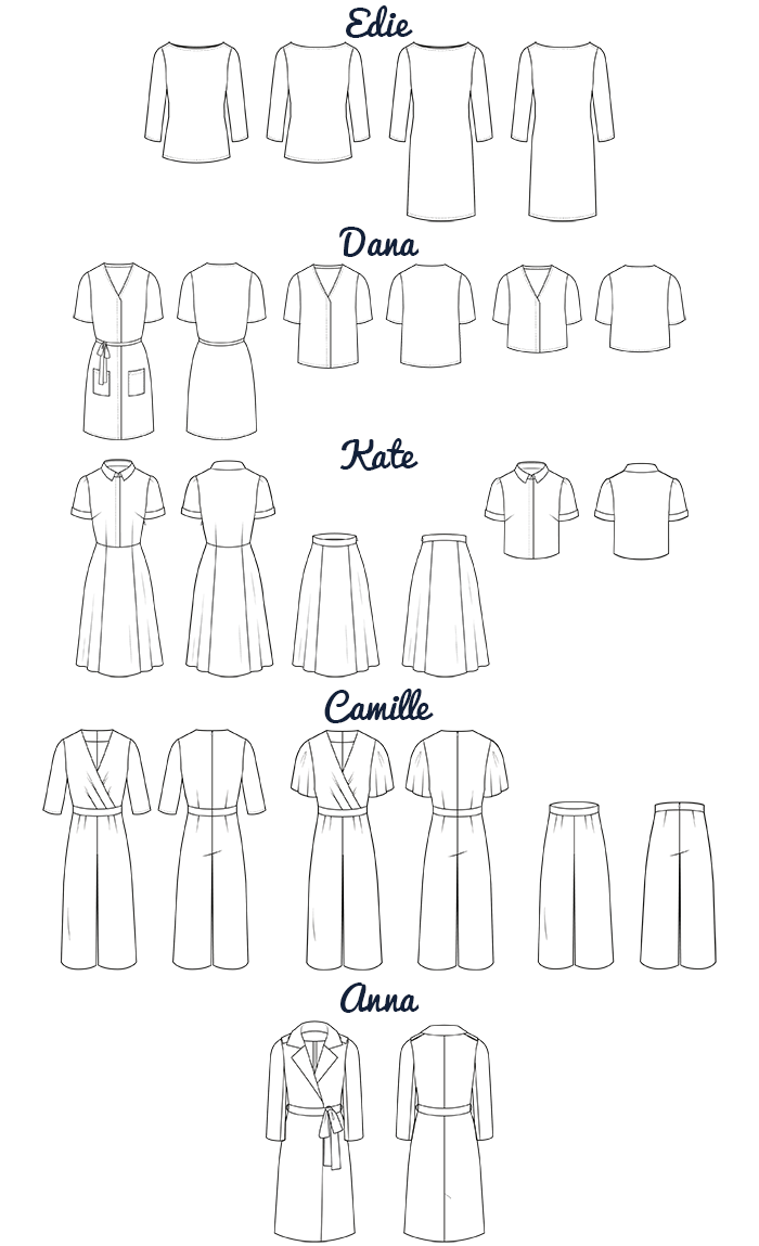 The five core patterns adapt to make 12 variations, giving you endless possibilities to mix and match and interchange everything. From the powerhouse Camille Jumpsuit to the super simple, make-it-in-an-hour Edie Top, these patterns go a long way. The collection includes a dress, skirt, trousers, top, jumpsuit and a gorgeous Mac coat. All your wardrobe bases are covered in our Work to Weekend collection.