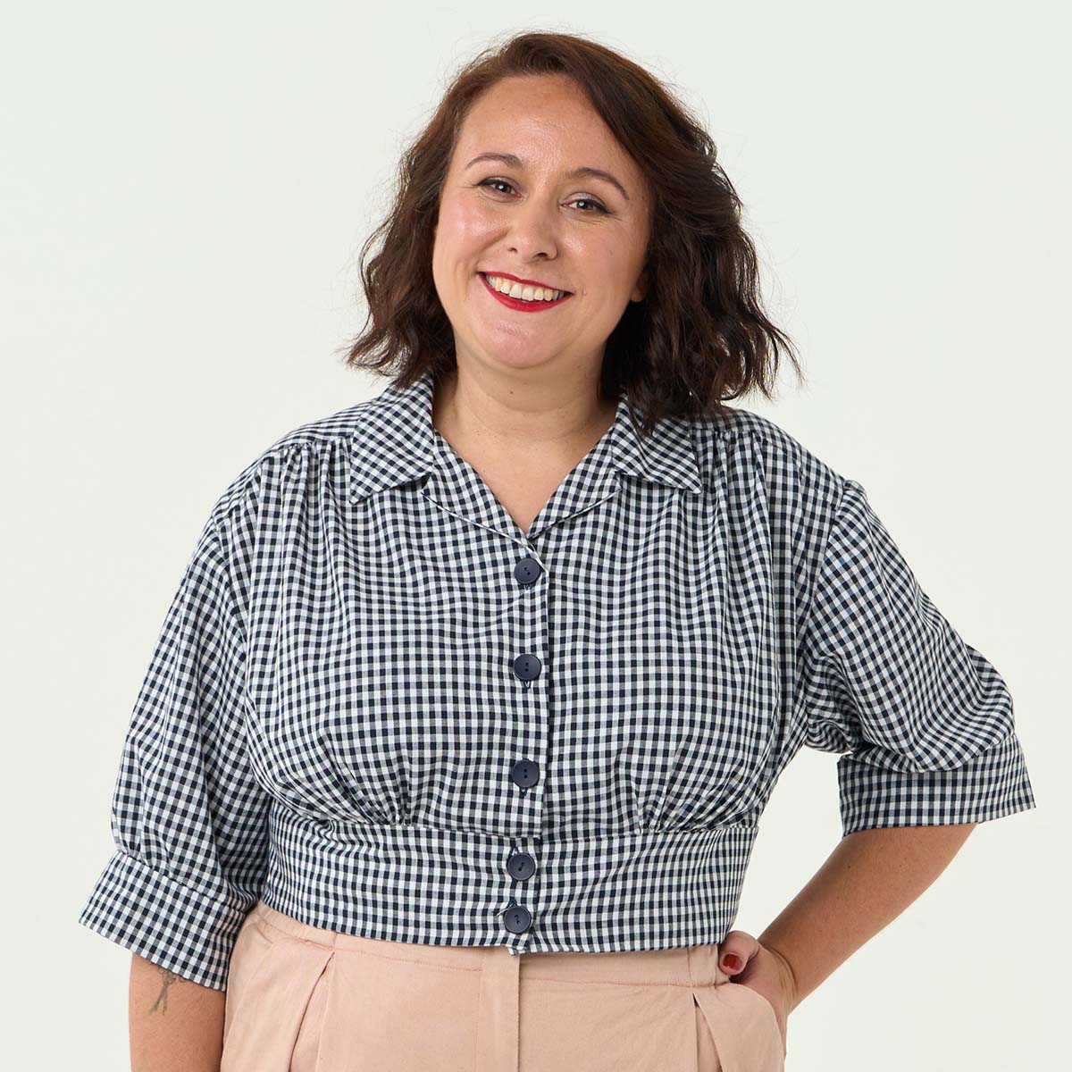 Rosie is the CEO of Sew Over It and has been sewing all her life. She is mostly self-taught but has spent the last ten years building on her skills by learning from the Sew Over It teachers. Rosie makes everything she wears and is really interested in getting the fitting spot on, as she has always found it tricky to find clothes that fit her perfectly on the High Street. For Rosie, being able to have a shirt or shirt dress that didn’t gape open was a game changer! She is a firm believer in sewing being fun, not scary. Rosie’s sewing journey was fast! She went from cushion covers to a dress to a coat with bound buttonholes – tackling difficult projects accelerated her sewing skills!