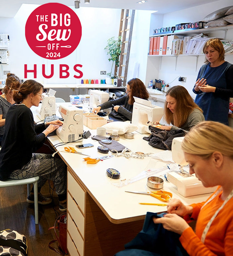 Join in our fundraising efforts by popping into a Hub to sew in the company of other sewists!