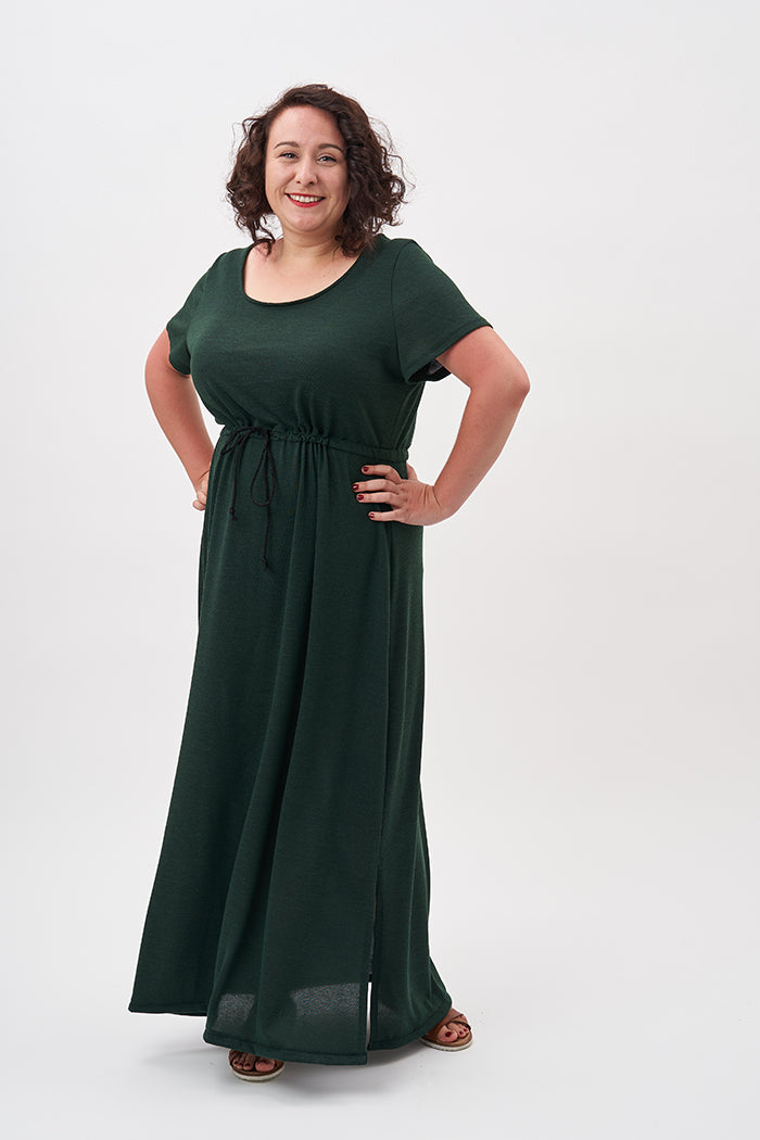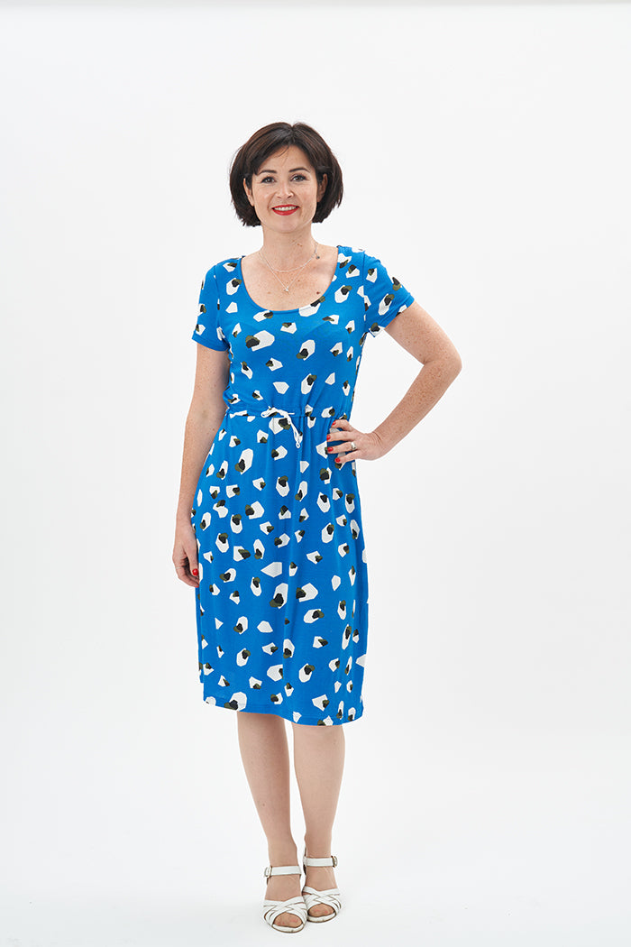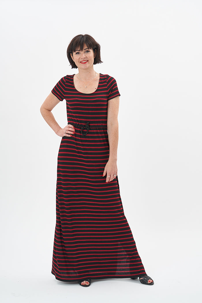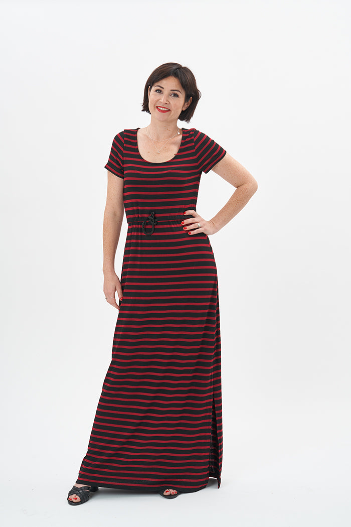 Lucy is a versatile, universally flattering t-shirt and dress, with serious need-one-for-every-day-of-the-week potential. As easy to wear as it is to sew, Lucy is the perfect basic, and features a scoop neckline, short sleeves and gently loose-fitting shape. The dress version can be made with either a maxi or knee-length hem, and is pulled in at the waist with a drawstring cord and casing. Pull it in tight to accentuate your waist, or leave it a bit loose for extra breeziness. The maxi length version features a side-seam split to just below the knee, to make walking that little bit easier.
