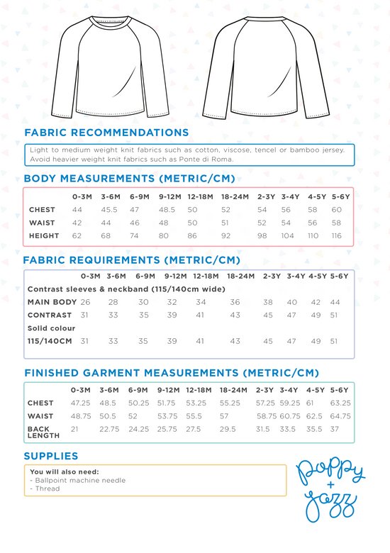 Super versatile, the Mini Hebden T-Shirt is a raglan-sleeved knit top that’s quick and simple sew. You can use two contrasting fabrics, with the sleeves and neckband in one colour and the body in another, to really show off the raglan construction. If you make it this way, it’s a great pattern for using up your jersey scraps.