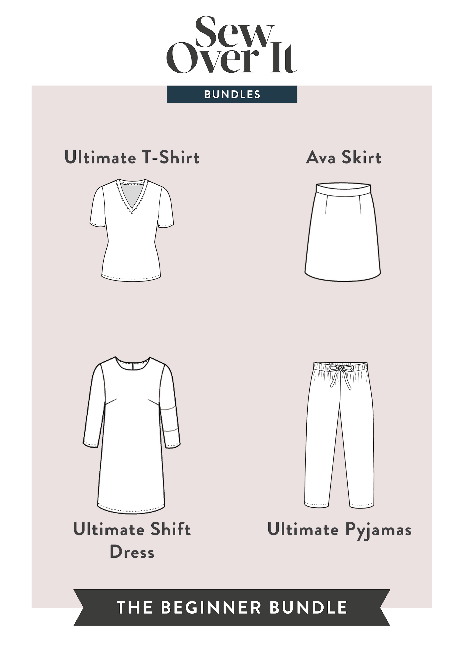 This collection includes the PDF patterns for the Ultimate Shift Dress, Ultimate T-Shirt, Ava Skirt & Ultimate Pyjamas
