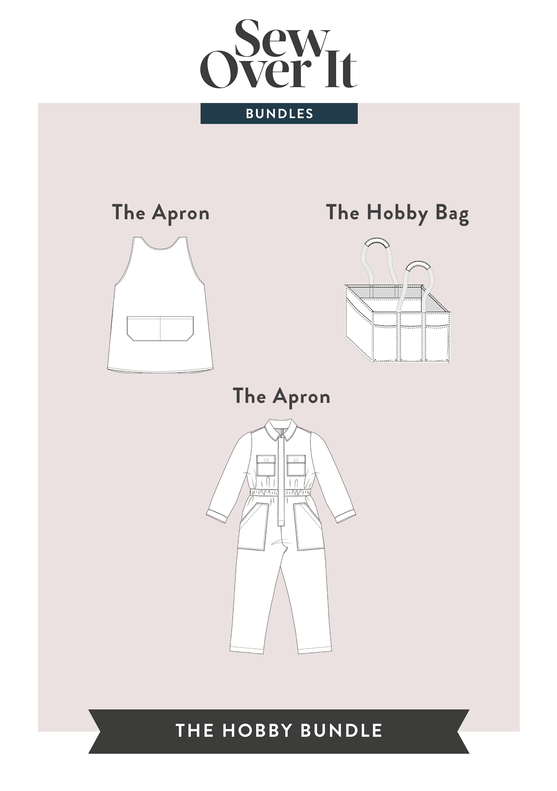 The bundle includes the PDF patterns for The Overalls, The Apron & The Hobby Bag.
