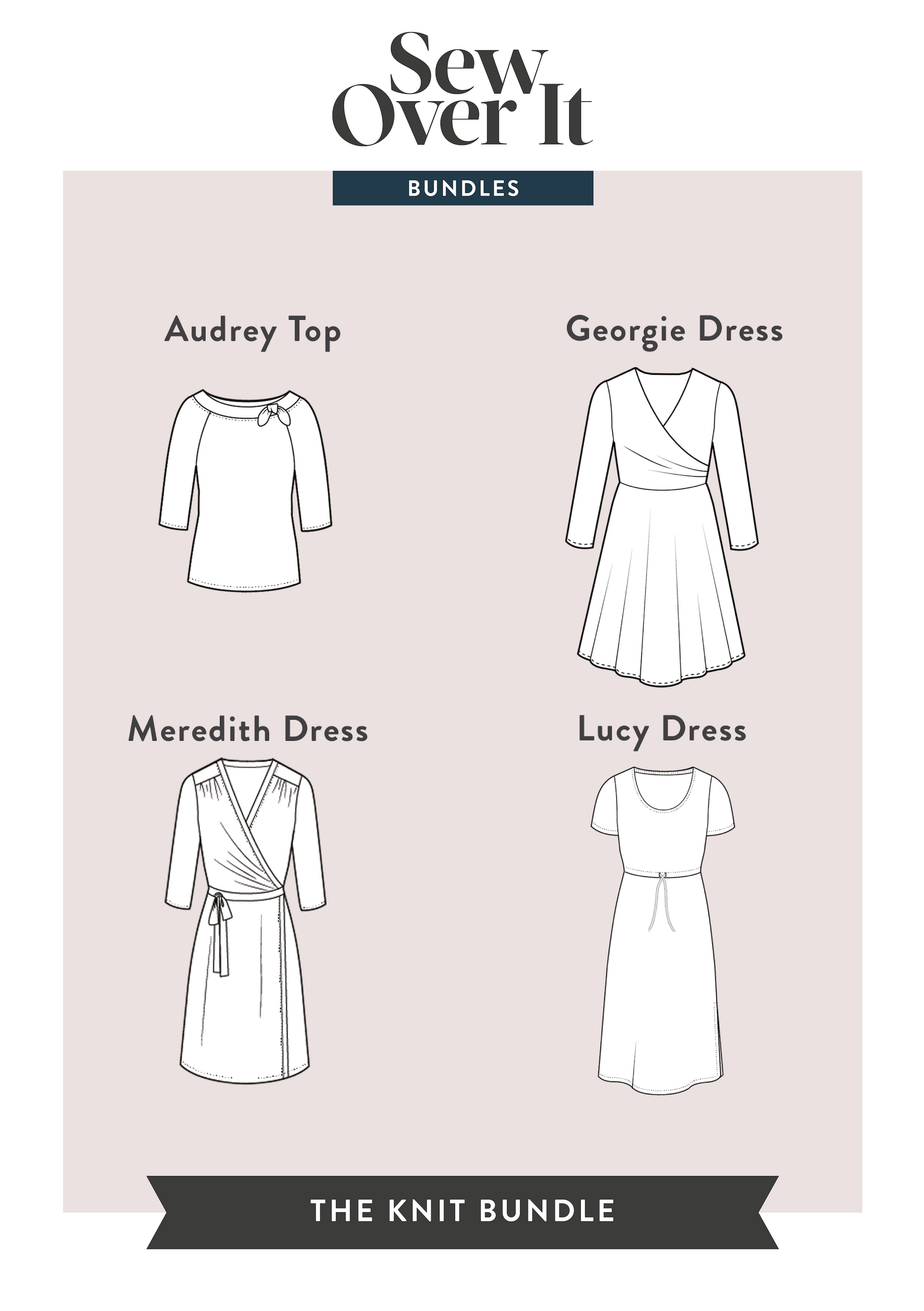 This collection includes the PDF patterns for the Meredith Dress, the Georgie Dress, the Lucy T-Shirt & Dress & the Audrey Top
