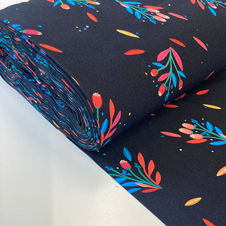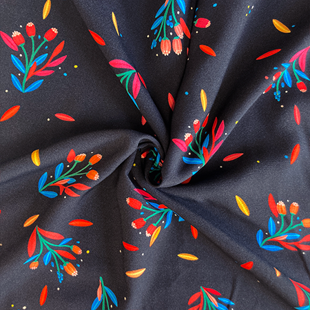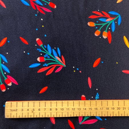 Washing instructions: As we can’t test wash all of our fabrics we recommend cutting a small square and testing your washing conditions. If you measure your fabric before and after washing you will be able to determine whether any shrinkage has taken place. Likely washing conditions for a viscose are 30°C. We also recommend washing with a colour catcher in the fabrics first wash.