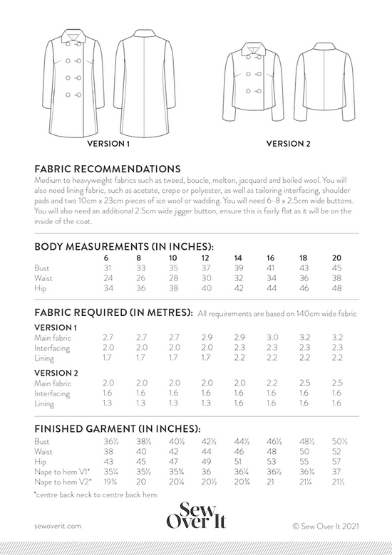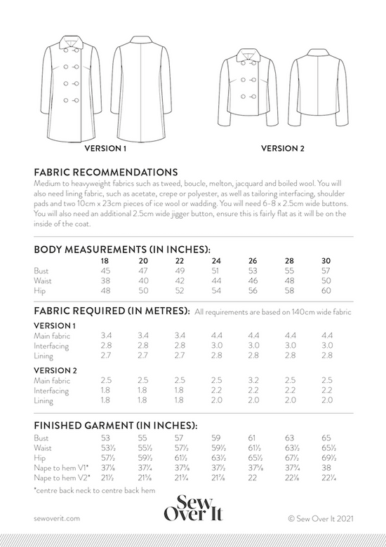 Inspired by the simple 1960’s silhouette and designed to stay swingy yet fitted, the 1960’s Coat exudes elegance and style. Team with a pair of skinny jeans or slip it on over a vintage-inspired dress to add the perfect finishing touch to your outfit! The 1960’s Coat is easy-to-wear, versatile number which complements any outfit and is a must-sew for Autumn/Winter.