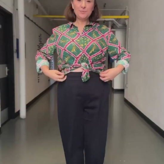 The Amy Shirt is a versatile pattern featuring all the essential elements of a classic shirt: a collar and collar stand, a button placket, long sleeves with buttoned cuffs, a chest pocket, a neat back yoke with fully enclosed seams using the burrito method and a beautiful curved hem, perfect for tucking in or leaving out.