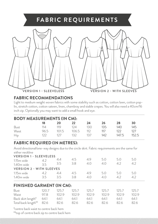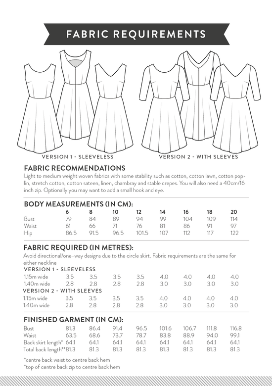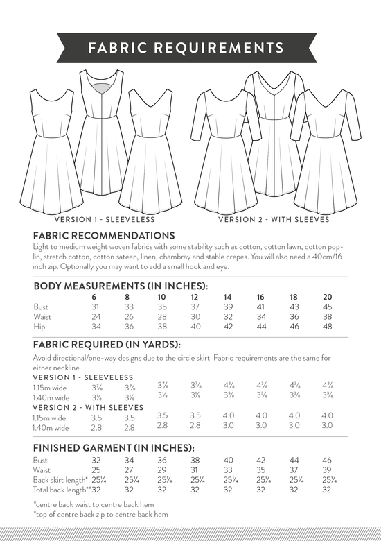 Pattern Sizes & Fabric Requirements