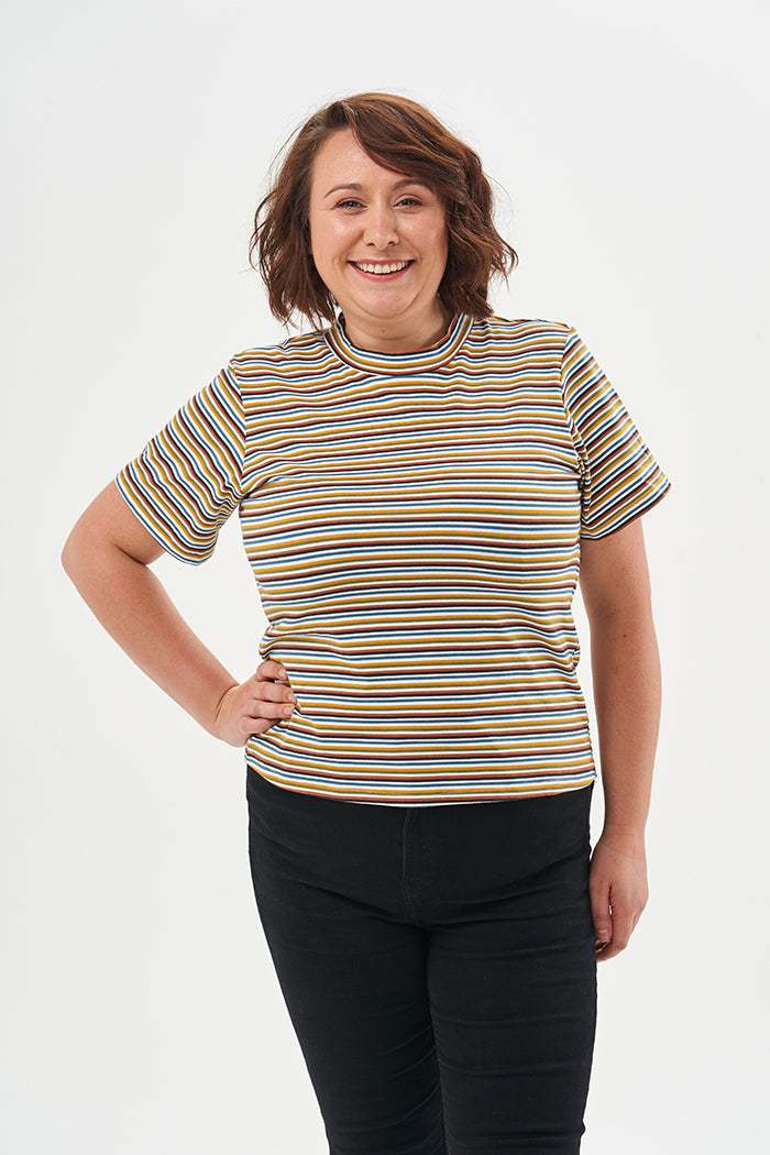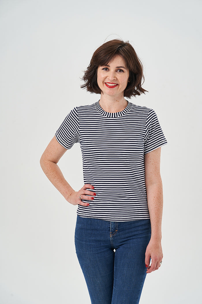 The Bilberry T-Shirt is a classic t-shirt sewing pattern designed with your everyday style in mind. With a modern cut and slim fit, it looks great tucked into a high waist or worn over your favourite jeans. Bilberry features short, set-in sleeves and a classic high neckline. Every wardrobe needs more than one!