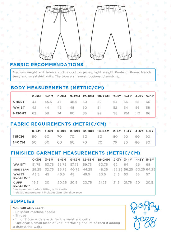 The Birch Trousers are perfect for kids who love to run around and stay comfy! Made from snuggly knit fabrics they feature an elasticated waistband and cuffs, with the option to add a drawstring at the waist.