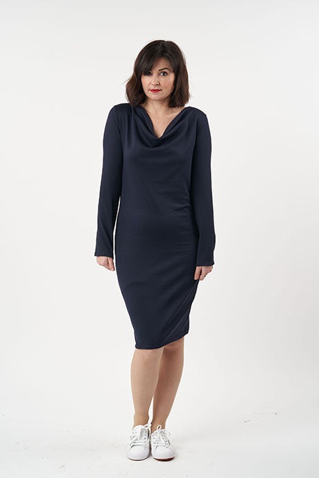If you want to learn to sew with jersey, this pattern is the perfect introduction. A stylish jersey dress with an interesting cowl neckline, it ticks a lot of our boxes: simple to sew and easy to wear!
