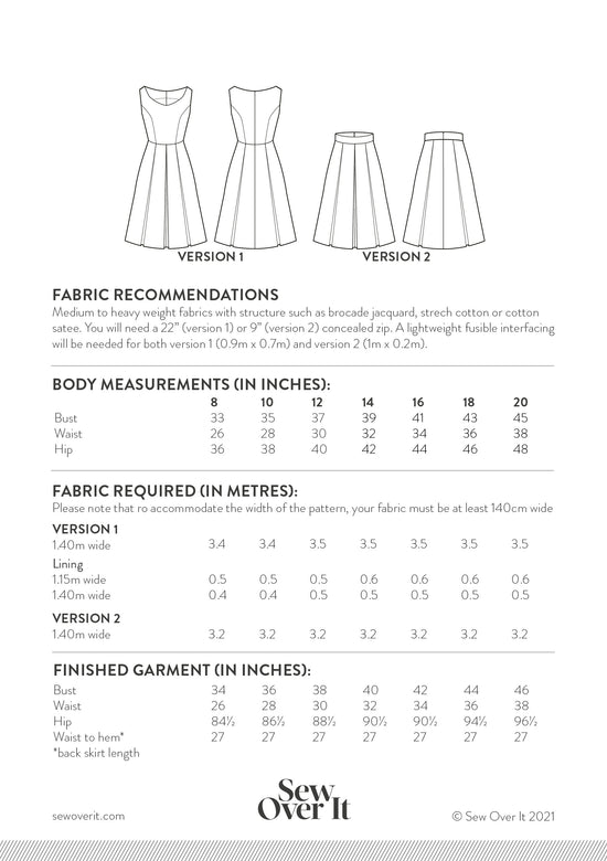 Designed to have that immaculate finish inside as well as out, Elsie features a fully lined and faced bodice, neat invisible zip and delicate hand finishing. The pattern also comes with a quick-to-sew skirt version too.