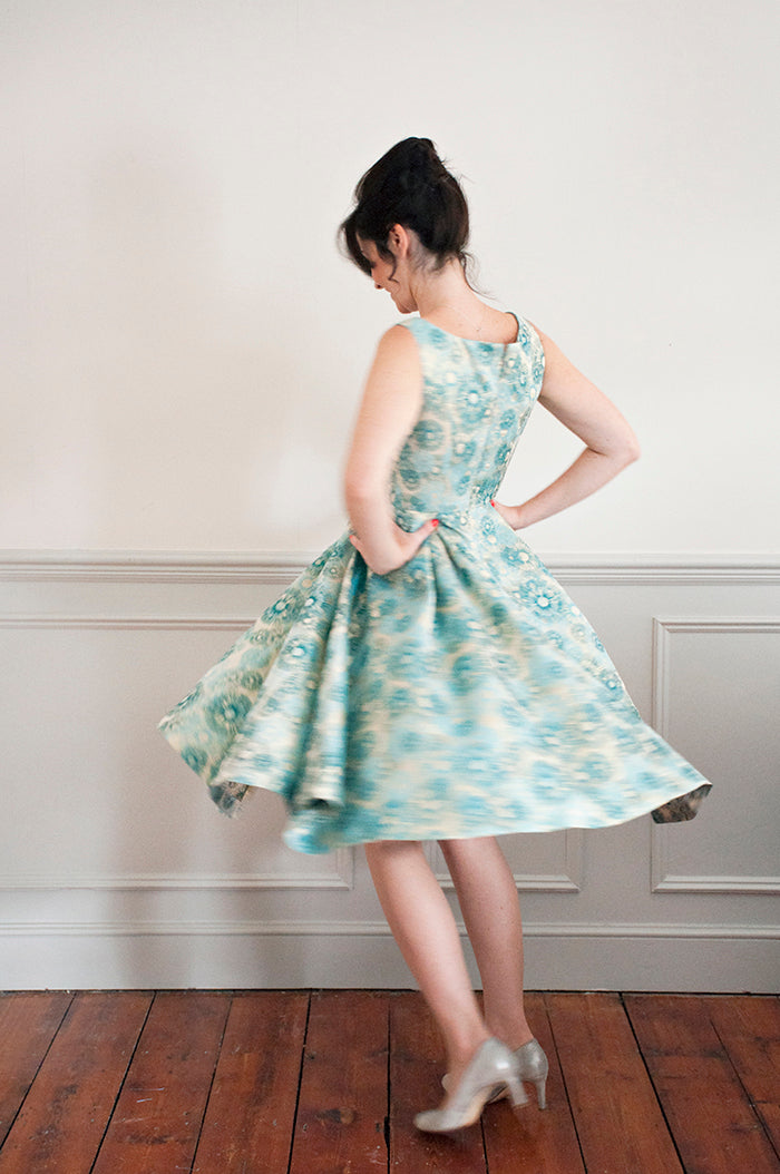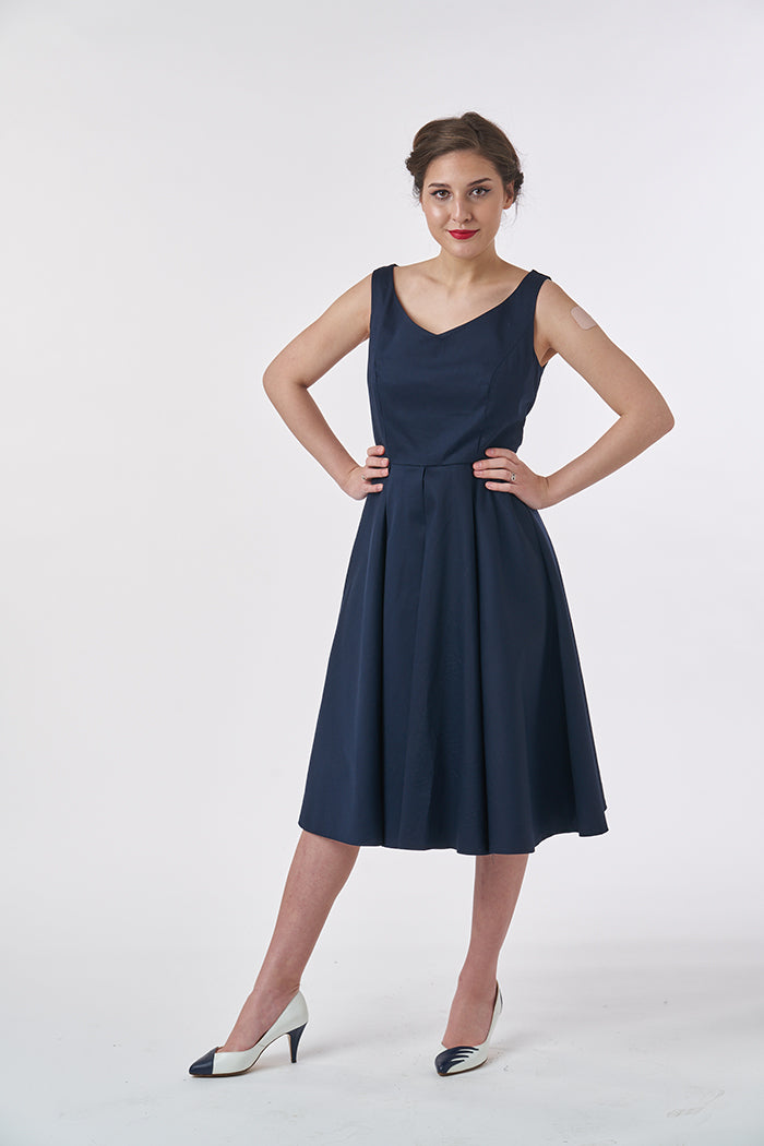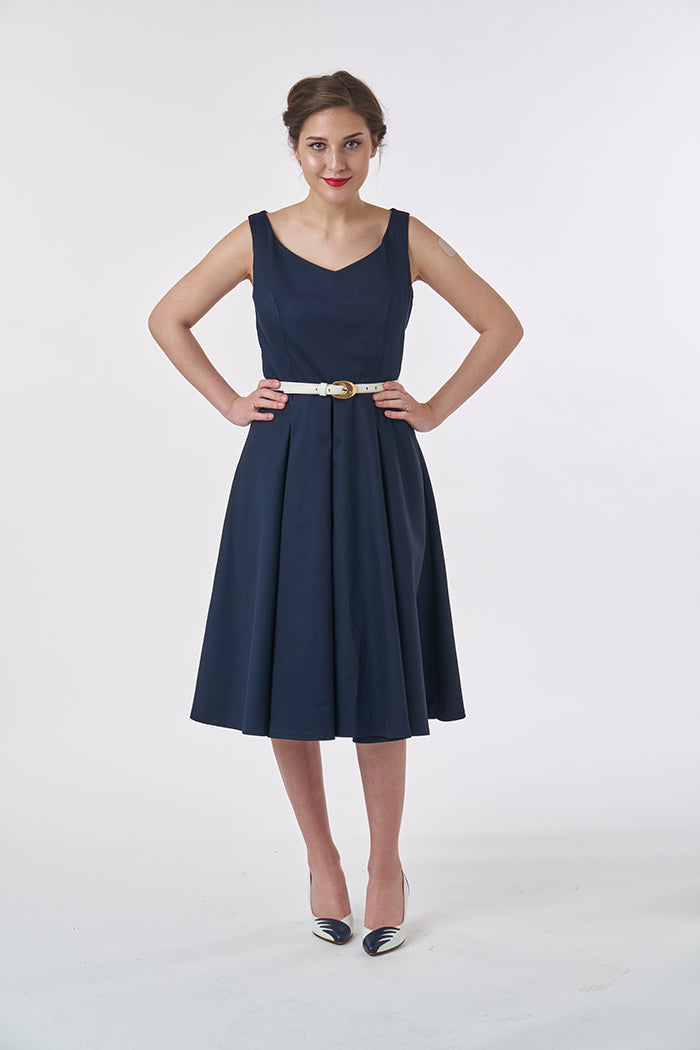 With a gently curved V-neckline, flattering princess seams, dramatic pleats and a nod to our favourite fashions of the ’50s, the Elsie Dress is elegant, sophisticated and guaranteed to catch an eye. We can definitely see Betty Draper in this!