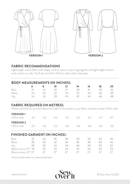 Eve is a versatile wrap dress with endless potential. With two stunning variations creating completely different looks, there’s so much fun to be had with this pattern! Whether you go boho romantic for summer garden parties or sleek and elegant for everyday, the Eve Dress will keep you dressed up in style.