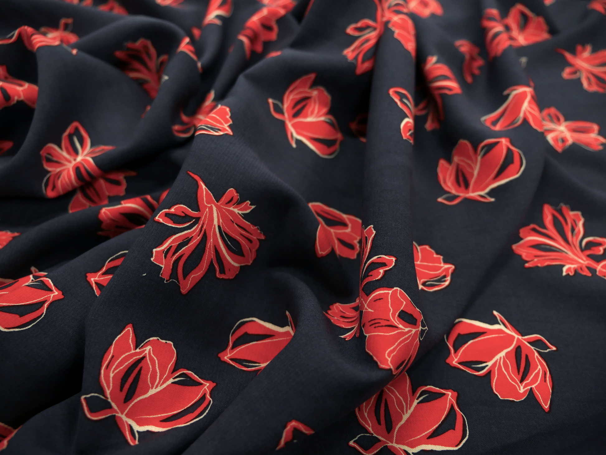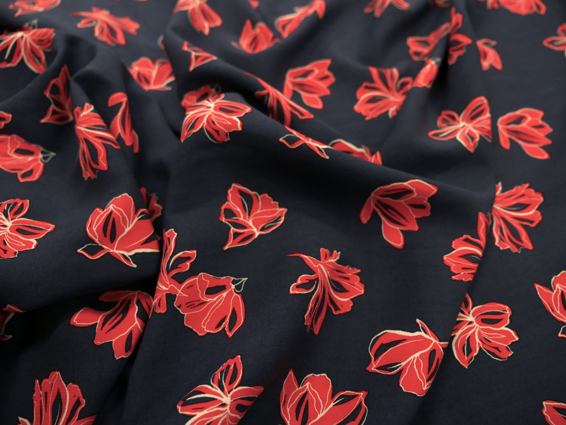The fabric we have chosen is a classic navy viscose with very pretty red flowers which really pop. Breathable and soft, this fabric would make such a smart everyday Florence Dress.