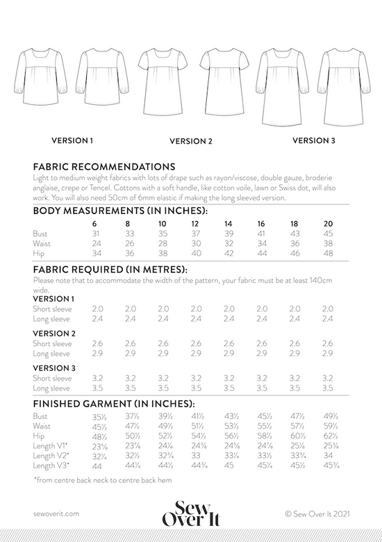 Make your Frida in a fun patterned fabric or use a plain one to highlight the pleat details and add a statement necklace for a smarter look. You can also have fun customising Frida with embroidery, ribbon or piping around the yoke to make your peasant style blouse and dress truly unique!