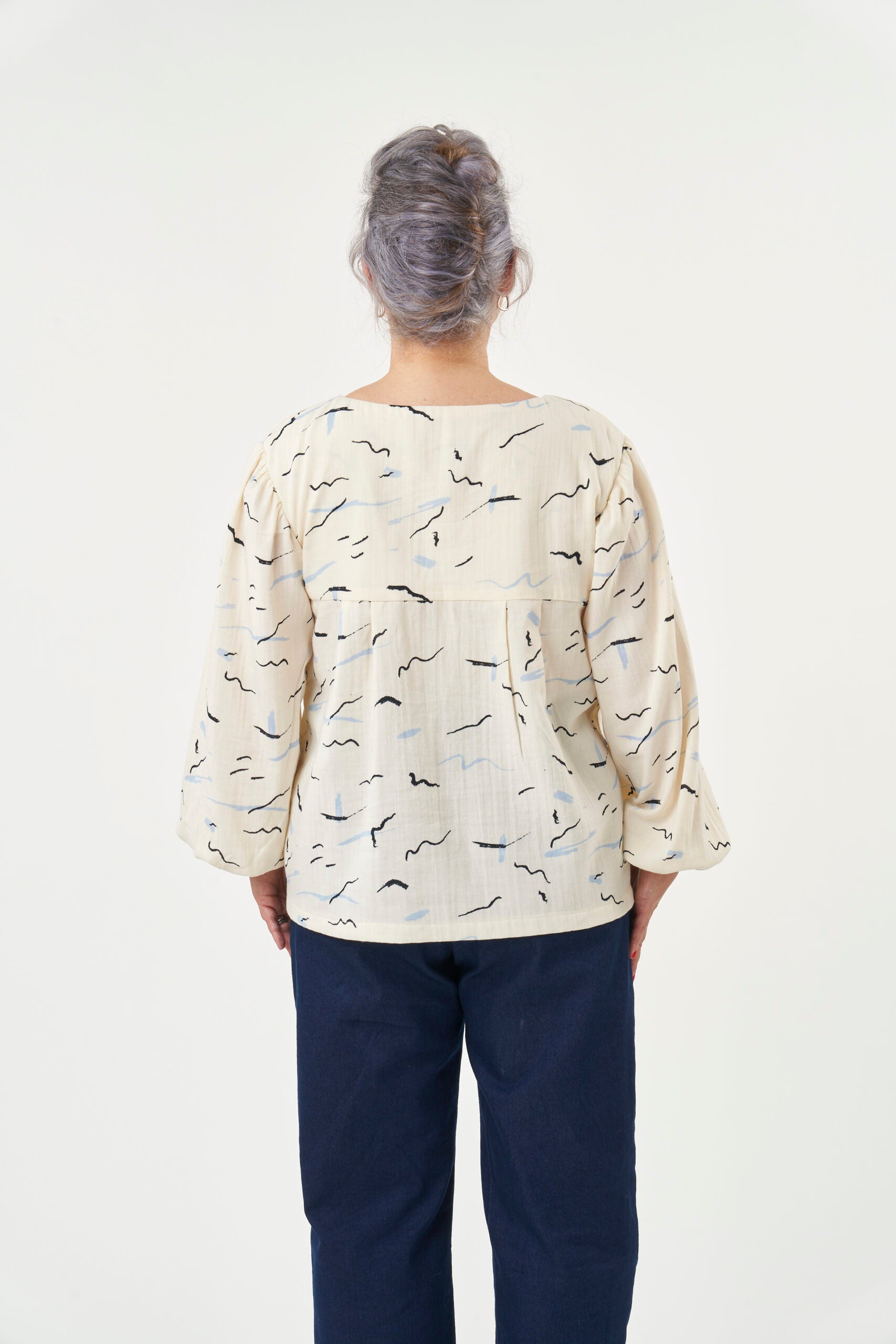 Frida features a front and back yoke, with pleats on both sides of the bodice and a choice of two sleeves: a simple short sleeve for warmer weather or a long one with fuller gathers at the shoulder and elastic at the wrists, perfect for autumn and spring. The blouse looks great over jeans or smart trousers like our Ultimate Trousers and the dress can be made in a mini or midi length. Wear it with sandals or pumps in the summer or with tights and boots in the autumn.