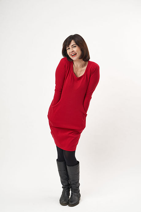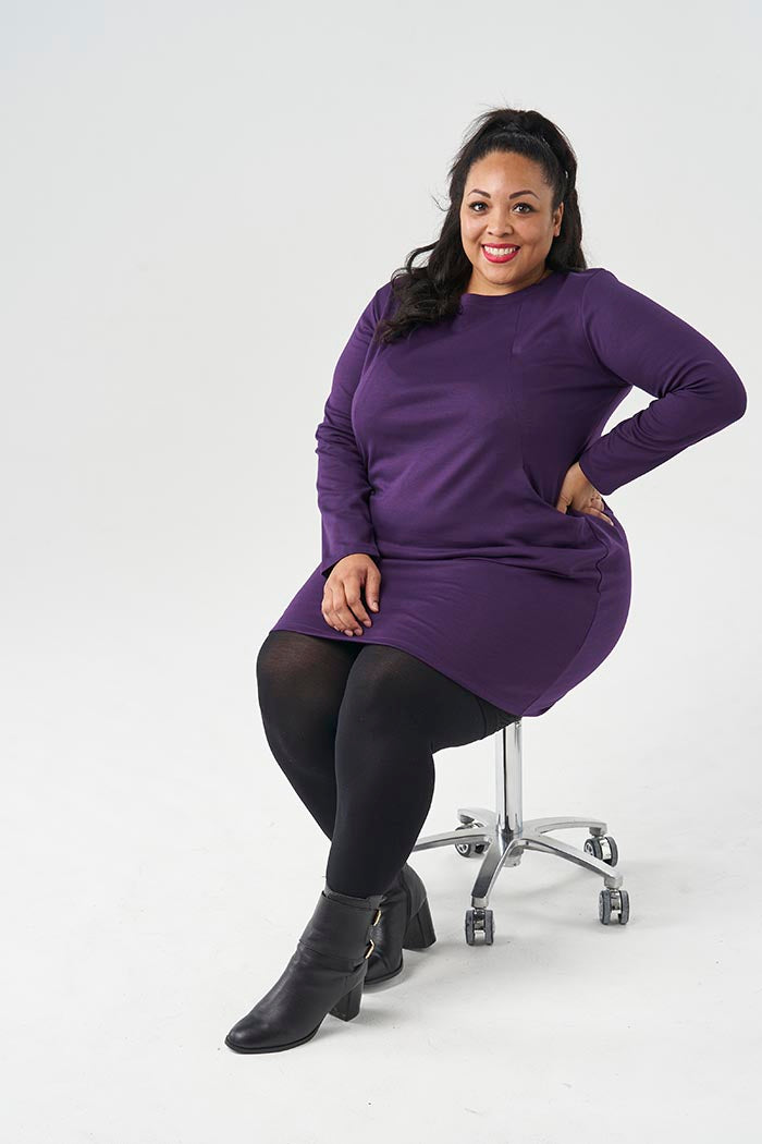 A fitted dress designed for mediumweight knit fabrics, Heather will keep you looking put-together whilst feeling comfy and super cosy throughout the colder months.