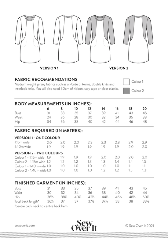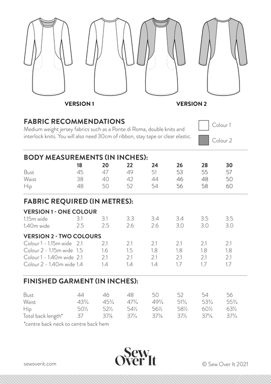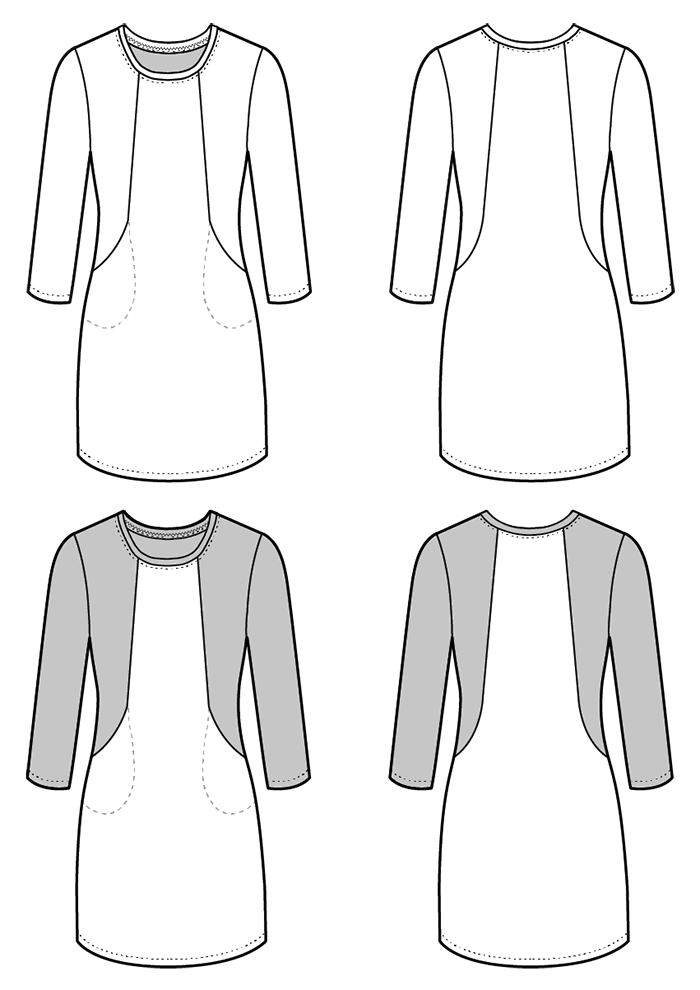 The Heather Dress has cleverly constructed in-seam pockets (always a winner!) and a panelled bodice which makes fitting a dream. With opportunities for colour blocking, you can really make Heather your own. Stay subtle in a solid fabric, go jazzy in a print, or go bold and mix the two to make a feature of the design lines. There are three sleeve options to choose from: a short capped sleeve, 3/4 length or full length.