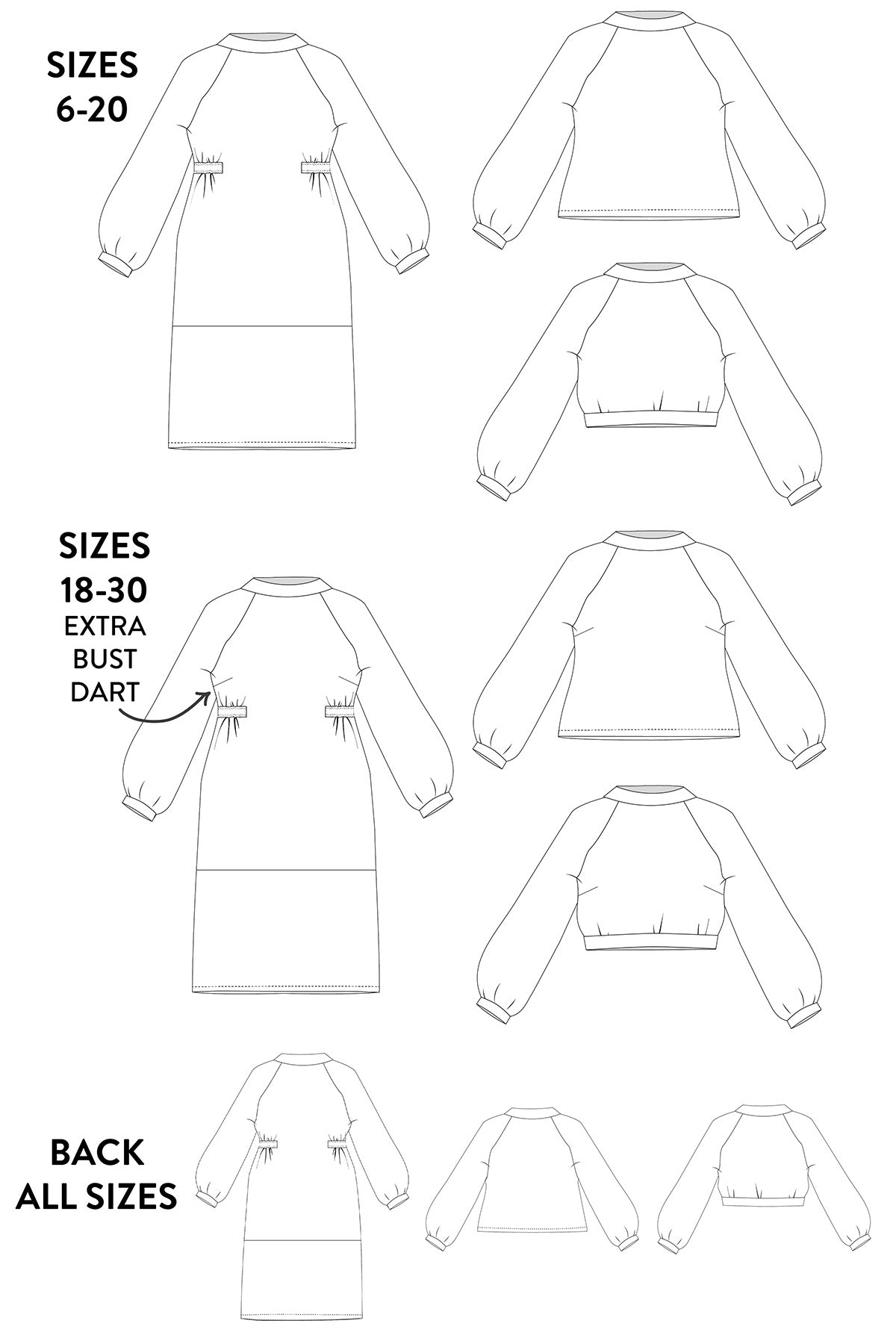 To give you a lot of versatility, we've included four different hem lengths: make Holly as a midi or a cute mini dress, or sew a practical Holly Jumper and choose between a hip-length design or a cropped style with a wide waistband.