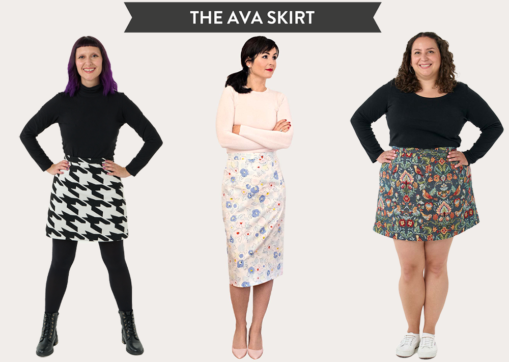 The Ava Skirt is a versatile A-line skirt with two hem length options: mini or just below the knee. She’s an everyday classic that’ll go with everything and work throughout the seasons – win-win! Ava features darts at the front and back for shaping, a centre back zip, narrow waistband and in-seam pockets! Made up of only four pieces, Ava is simple to sew and a perfect starting point for beginner dressmakers.