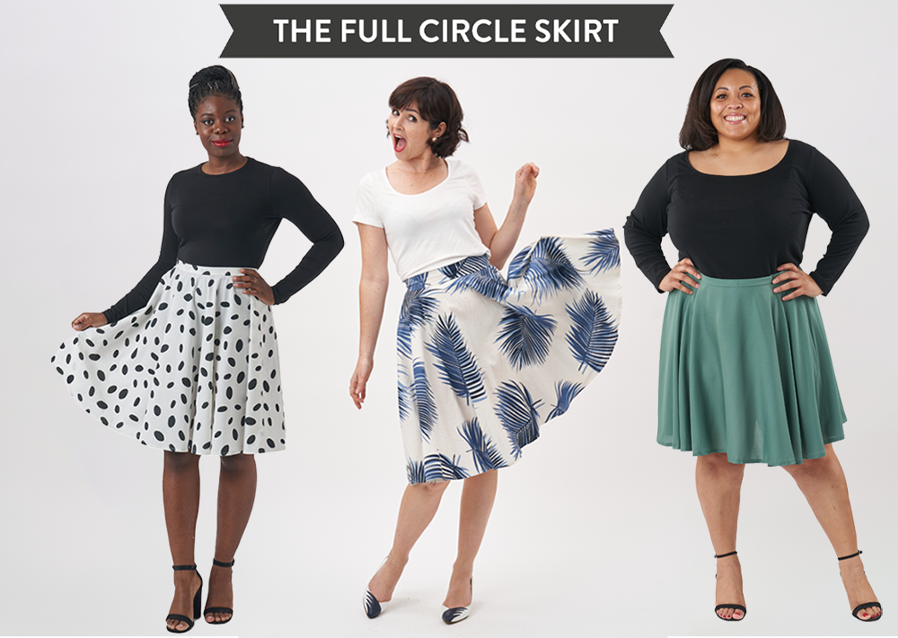 The Full Circle Skirt is the ultimate party skirt. With maximum twirl-ability and a gorgeous 1950’s silhouette, it cinching you in at the waist before skimming out over the hips. For full-on vintage vibes, we love wearing it over a petticoat! Made up of just three pieces, the Full Circle Skirt is a satisfyingly simple sew.