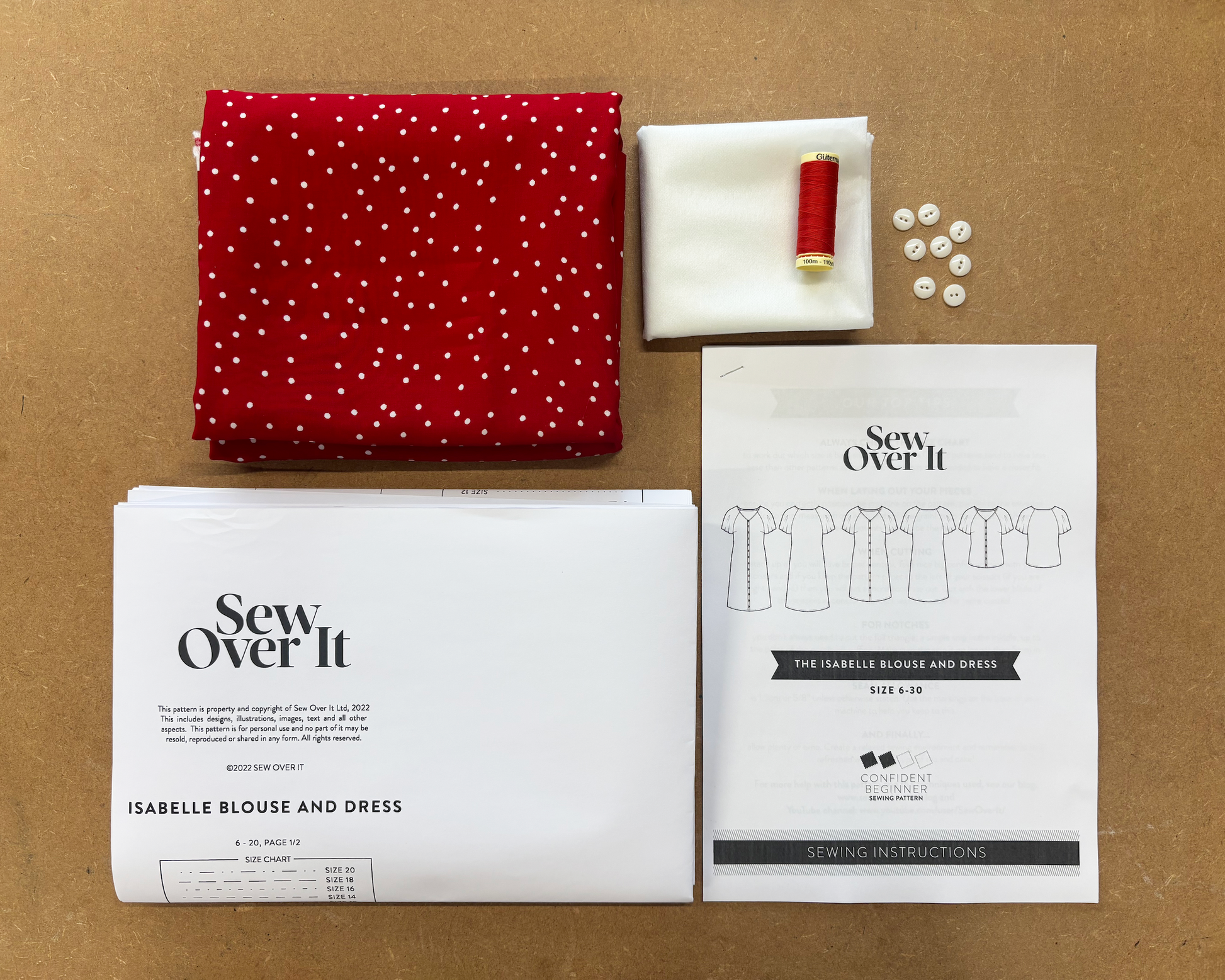 This kit includes the pattern, instructions, fabric and supplies to sew up the Isabelle Blouse, PLUS the PDF pattern with the dress variations so you can make Isabelle again and again.