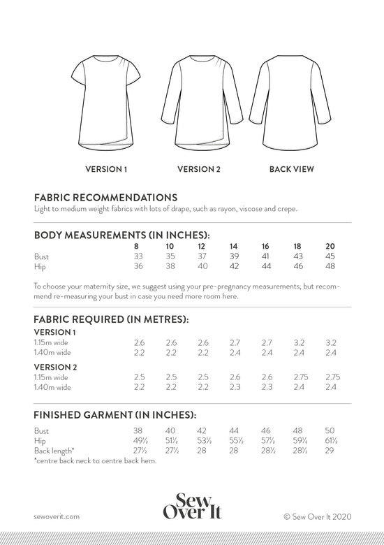Our Lily Top Maternity Sewing Pattern makes a pretty, versatile and practical blouse with a clever double-layer front, round neck and choice of 3/4 length or cap sleeves.