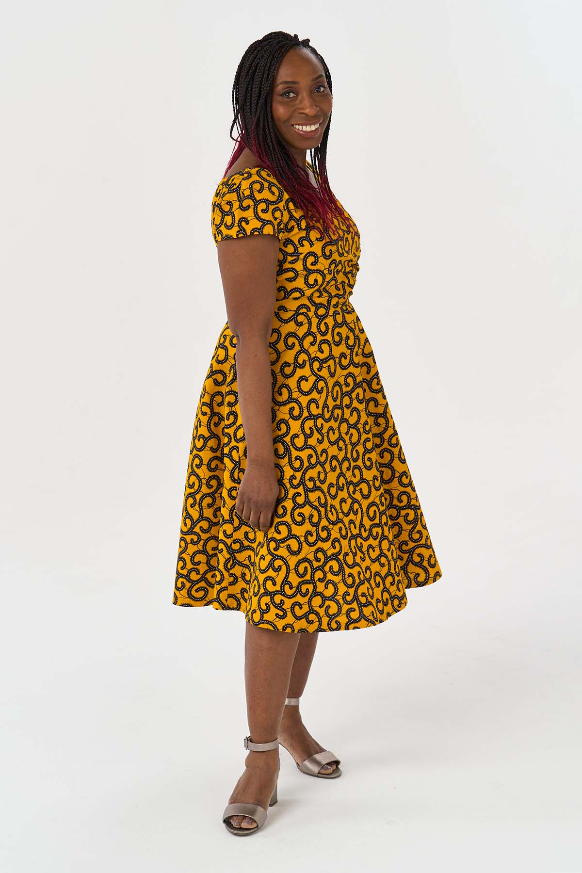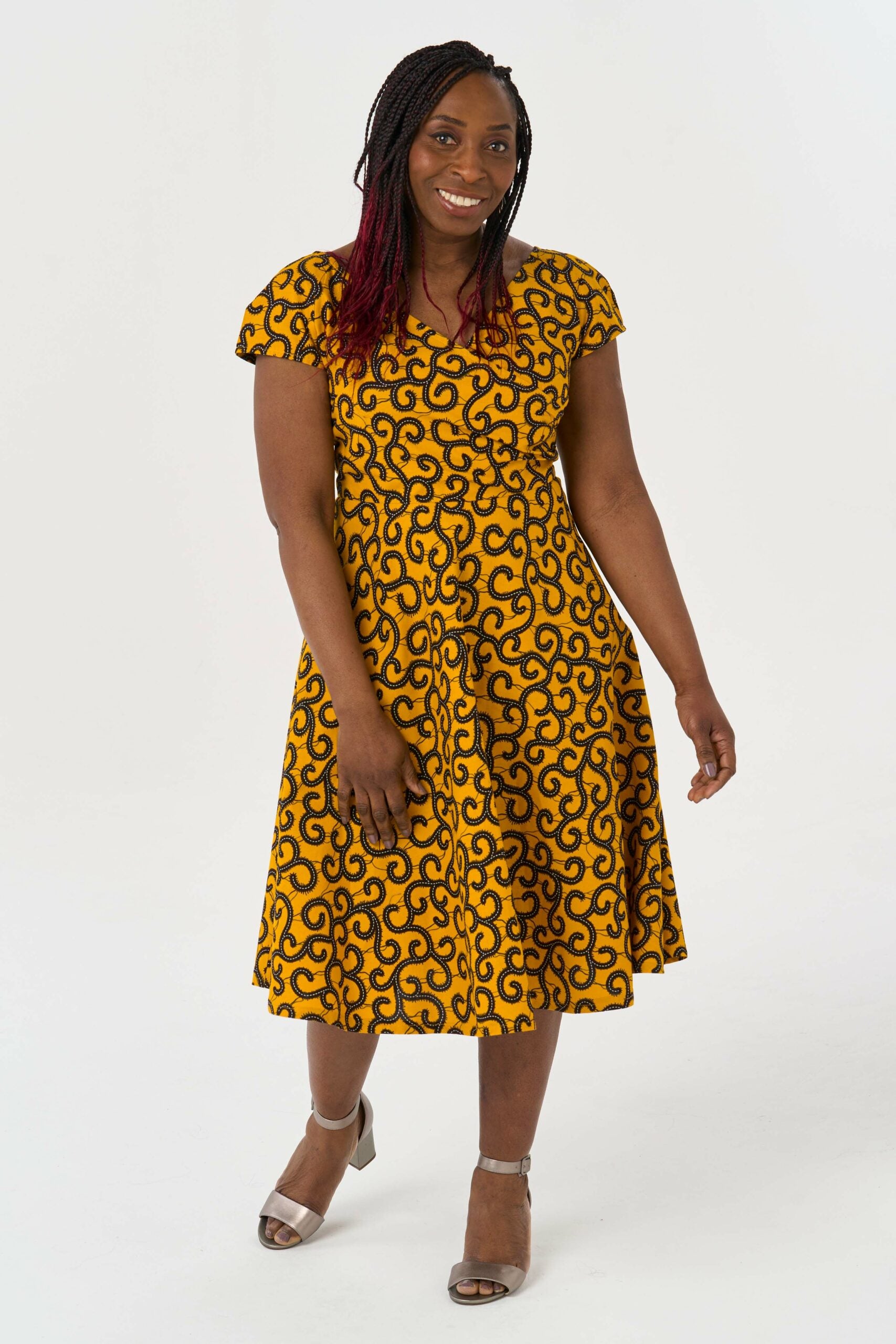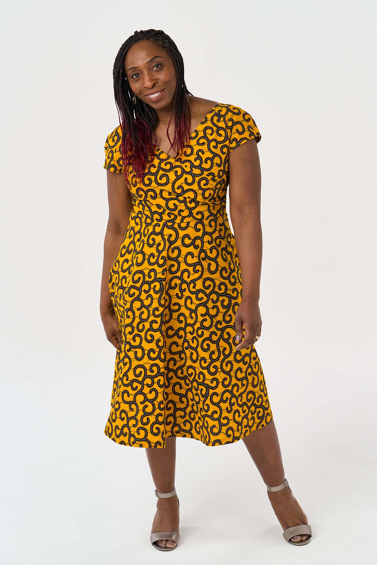 Maisie is a 1950s-style fit and flare dress – straight out of Mrs Maisel’s wardrobe. Feminine and universally flattering, Maisie is your go-to when you want to feel a little fancy, day or night! It’s all about fabric choice. Cotton lawn makes for a lovely daytime look, but if you’re dressing up for a fancy party or wedding, you’ve got the option to go all-out with a dazzling brocade. If you love a print, Maisie also works beautifully made in an Ankara fabric!