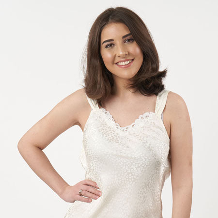 The Sidbury Slip has a stunning appliquéd lace front, with a bias-bound back neckline and underarms and lovely pleated straps. It is cut on the bias and has bust darts to help you to create your perfect fit.