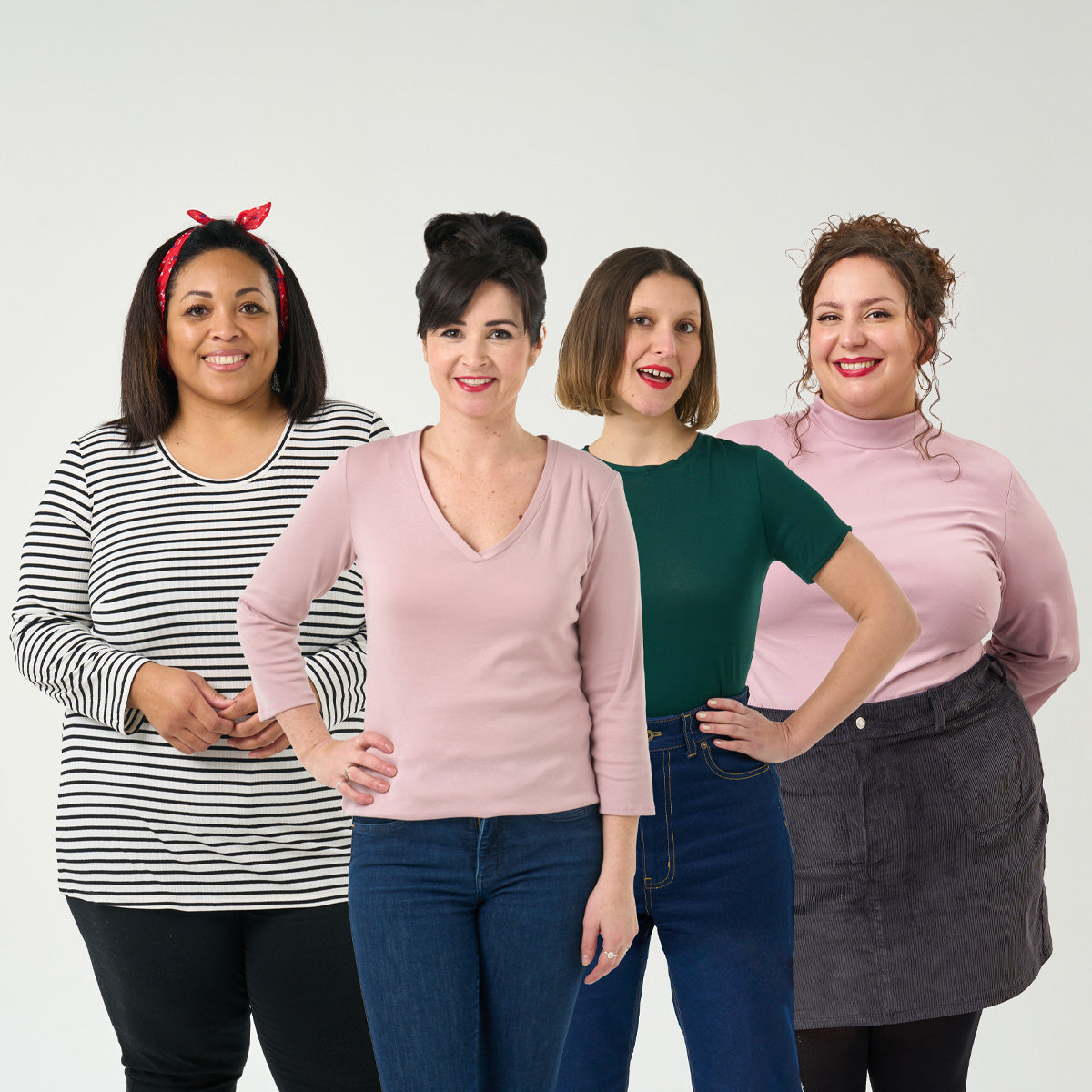 With three different necklines and sleeve lengths to choose from, you can make up to 9 different versions of this pattern! It's a great one to hack and combine with other patterns too. Choose between a crew, scoop or V neck and make the sleeves short, 3/4, or full length, or use the Ultimate T-Shirt Add-On (also included with the class) to make a cosy Roll Neck!