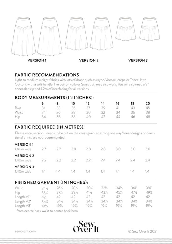 Aimed at Confident Beginners, this woven skirt sewing pattern is perfect for every season. Niamh is easy to make – if you’ve conquered zips it’s a pattern you can sew up in a day! A pretty gathered skirt flows down from the pointed V shape yoke to create a stylish, close fitting silhouette around the hips. Simple, yet elegant and timeless, this sewing pattern suits everyone – it should be our Ultimate Skirt!