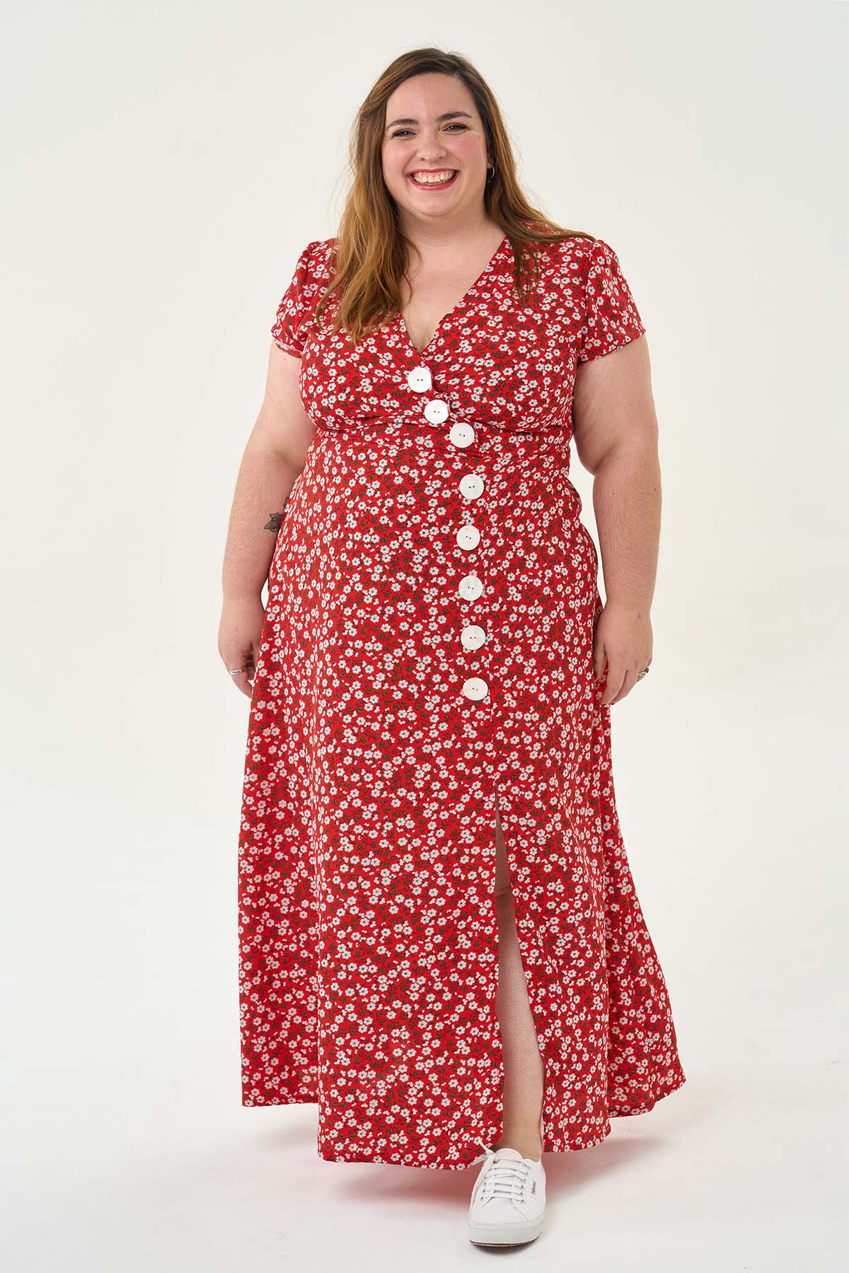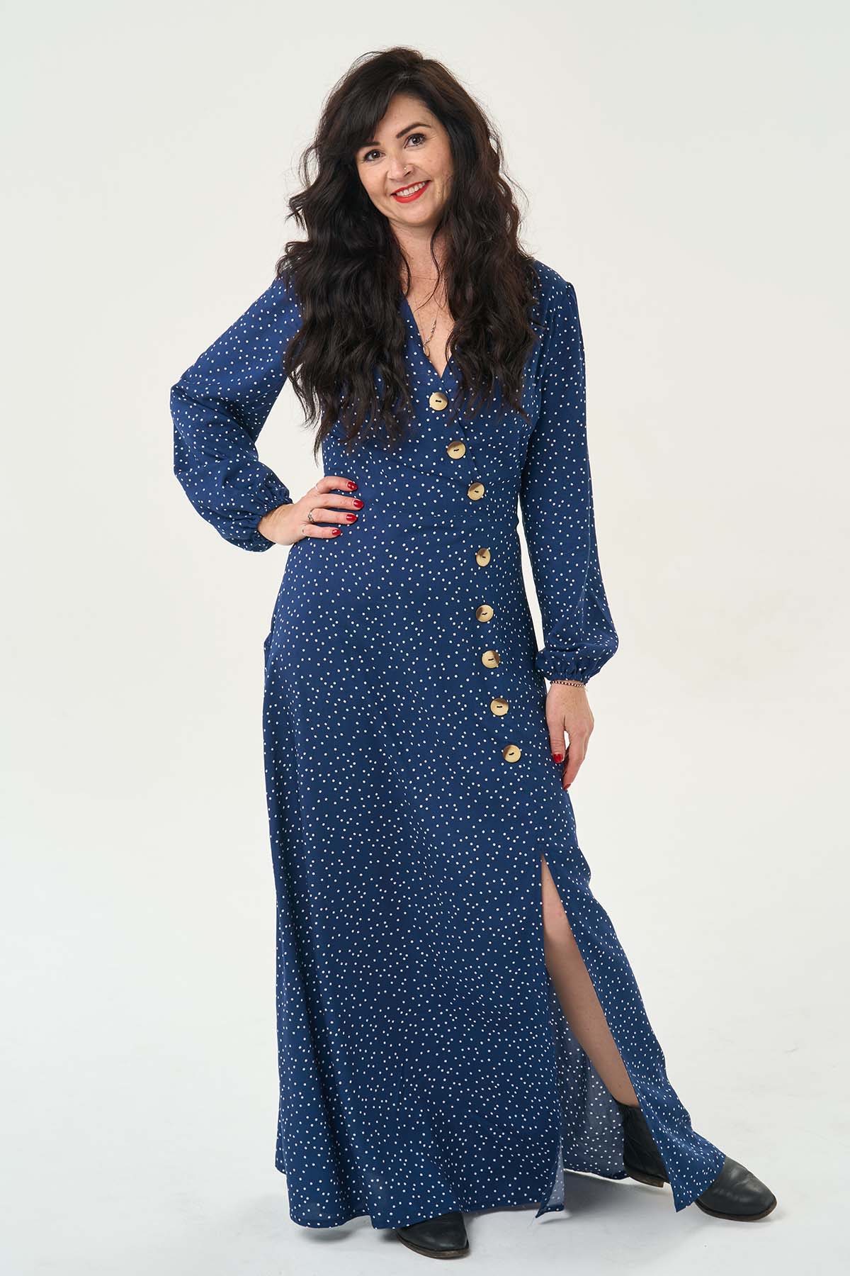 The Pippa Dress features an asymmetrical design with a line of buttons going down the front. These are just for decoration – no buttonholes needed – so you can have fun button-hunting, without worrying too much about the size. Use larger ones for a statement detail, or keep them small for a more delicate look. You could also leave the buttons off completely and catch-stitch the bodice instead.