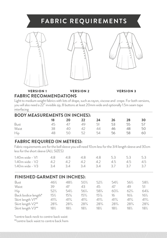 Pick between a mini, midi or maxi length and sew the skirt closed, or leave a sassy slit (perfect for the maxi version!). We’ve also given you three sleeve styles to choose from, so you can sew the Pippa Dress for any season: short, 3/4 length or a full-length bell sleeve with elastic at the hem.