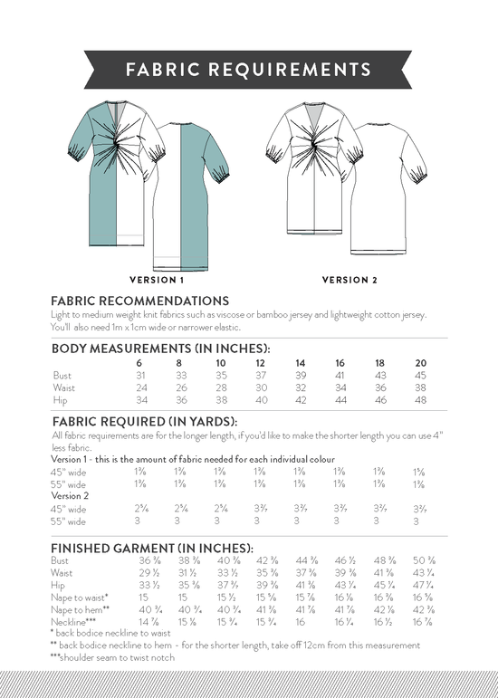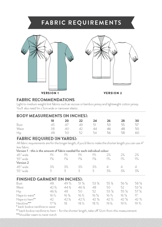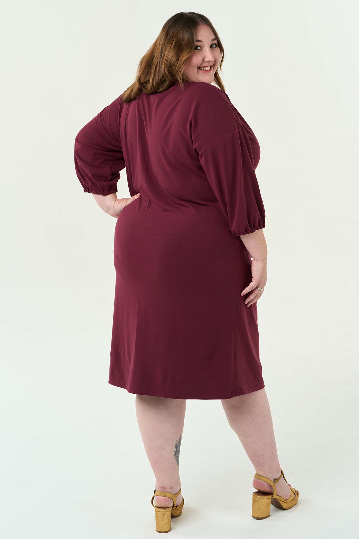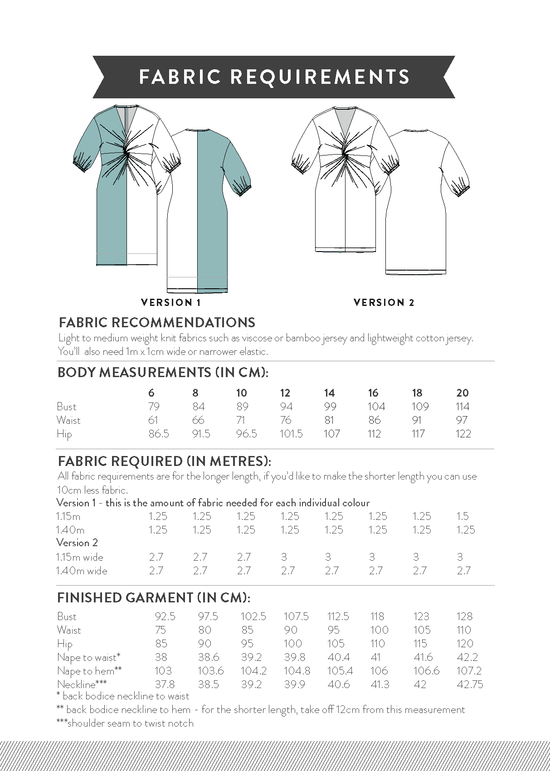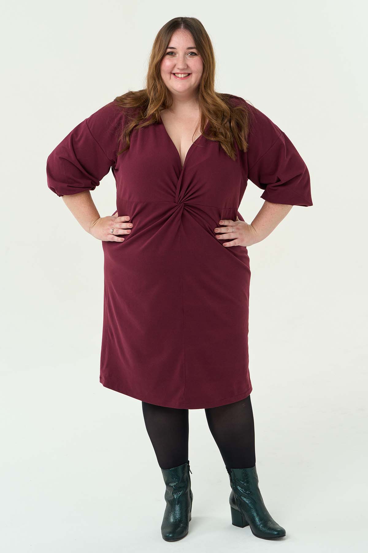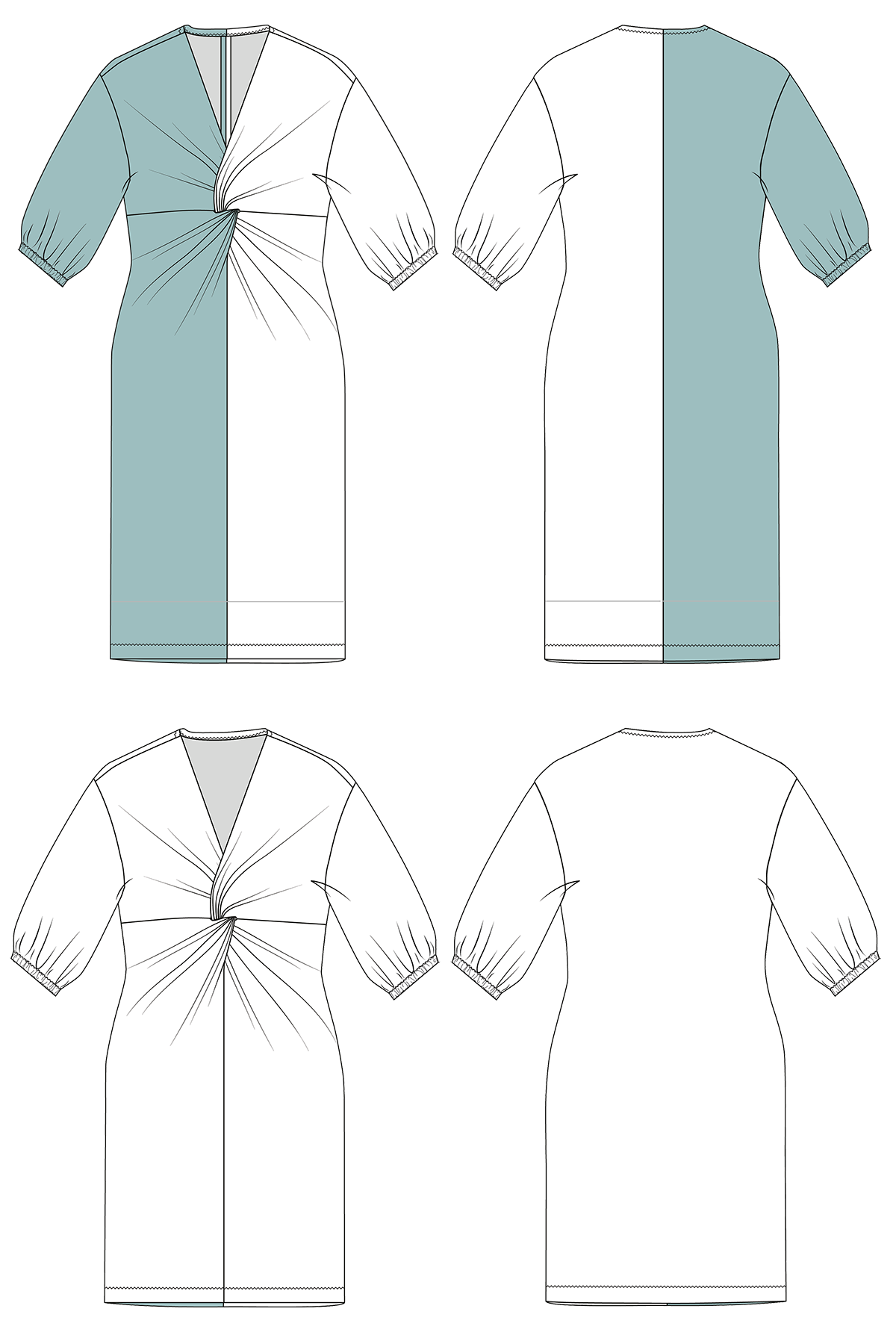 The Portia Dress is a fitted dress designed for knits, giving you a stylish slinky silhouette with all the comfort of jersey fabrics. The focus point is the twist at the front which looks fancy but is so easy to construct. The twist sits just under the bust creating some beautiful draping in the fabric and the whole dress comes together really quickly.