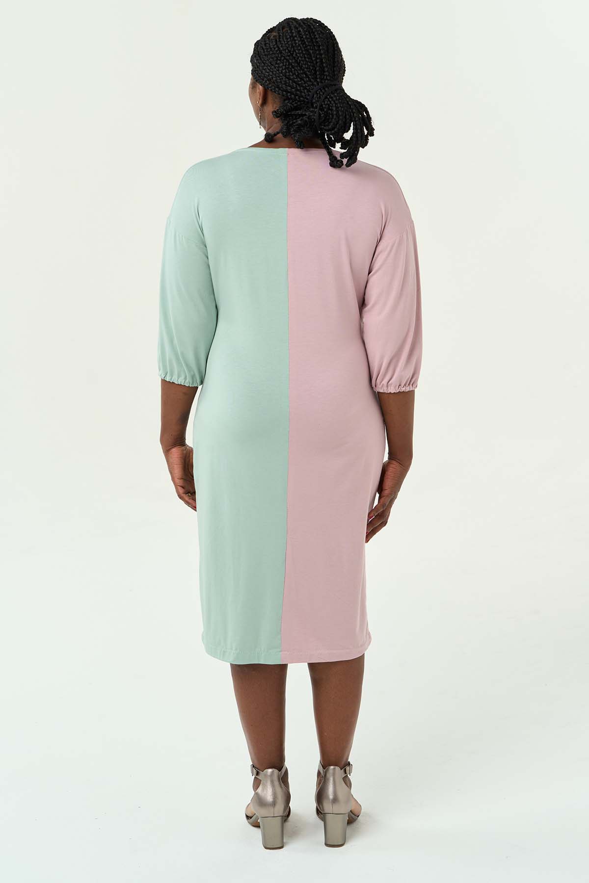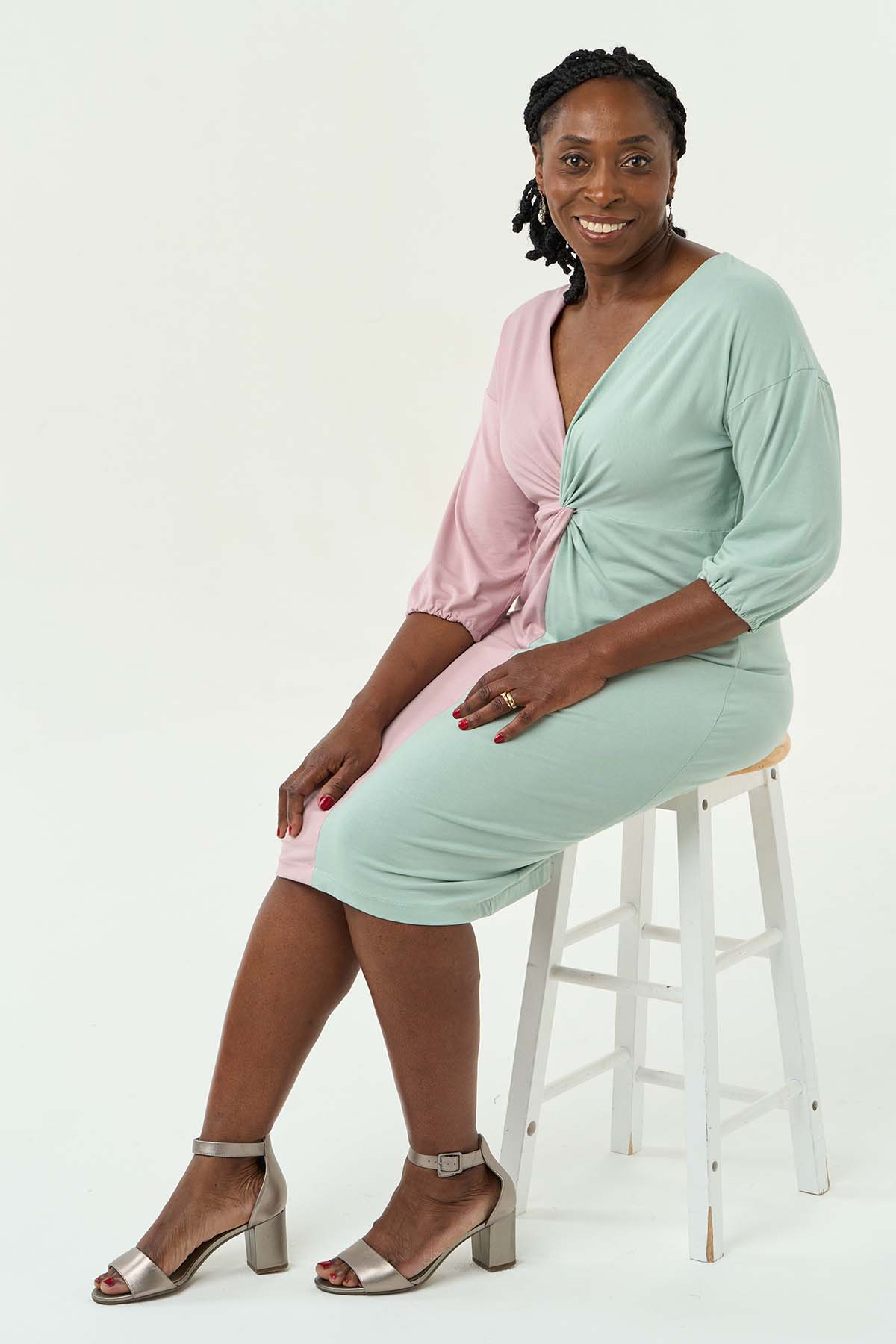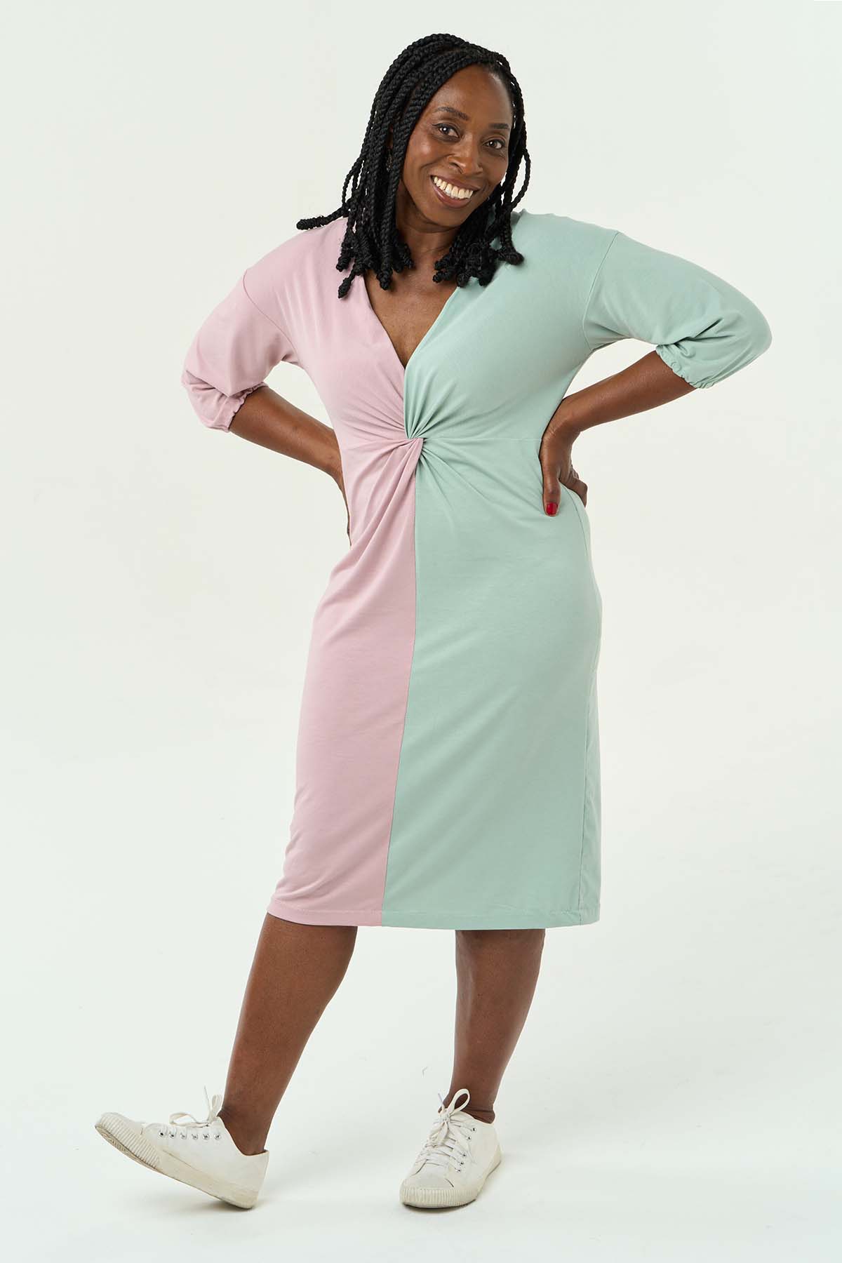 Make your Portia in a solid colour, or have fun with colour-blocking and go half and half both at the front and back of the dress.