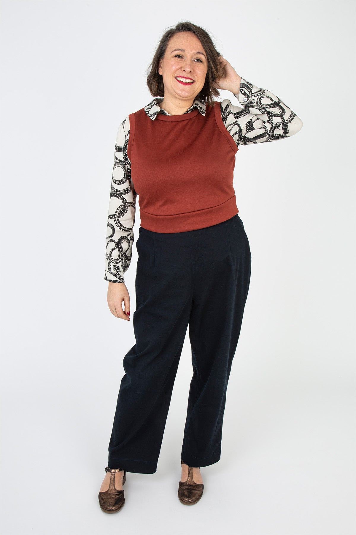Knitted vests are everywhere at the moment and we thought the sewing community needed its own version of this handy little garment: enter the Stevie Slipover sewing pattern.