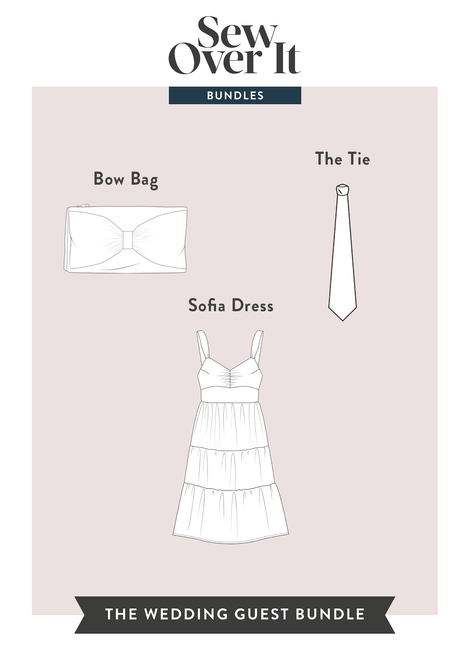 The collection includes the PDF patterns for the Sofia Dress, Bow Bag & Tie patterns.