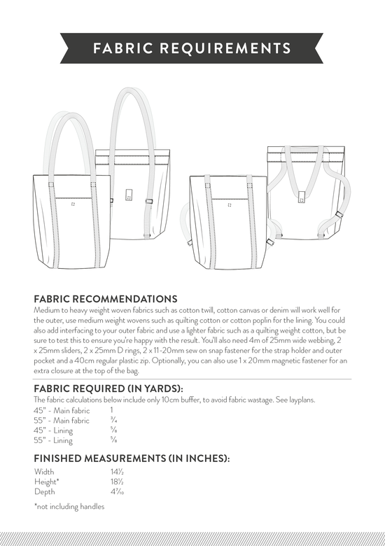 Sew a tote bag and a backpack in one with the Totepack sewing pattern!
