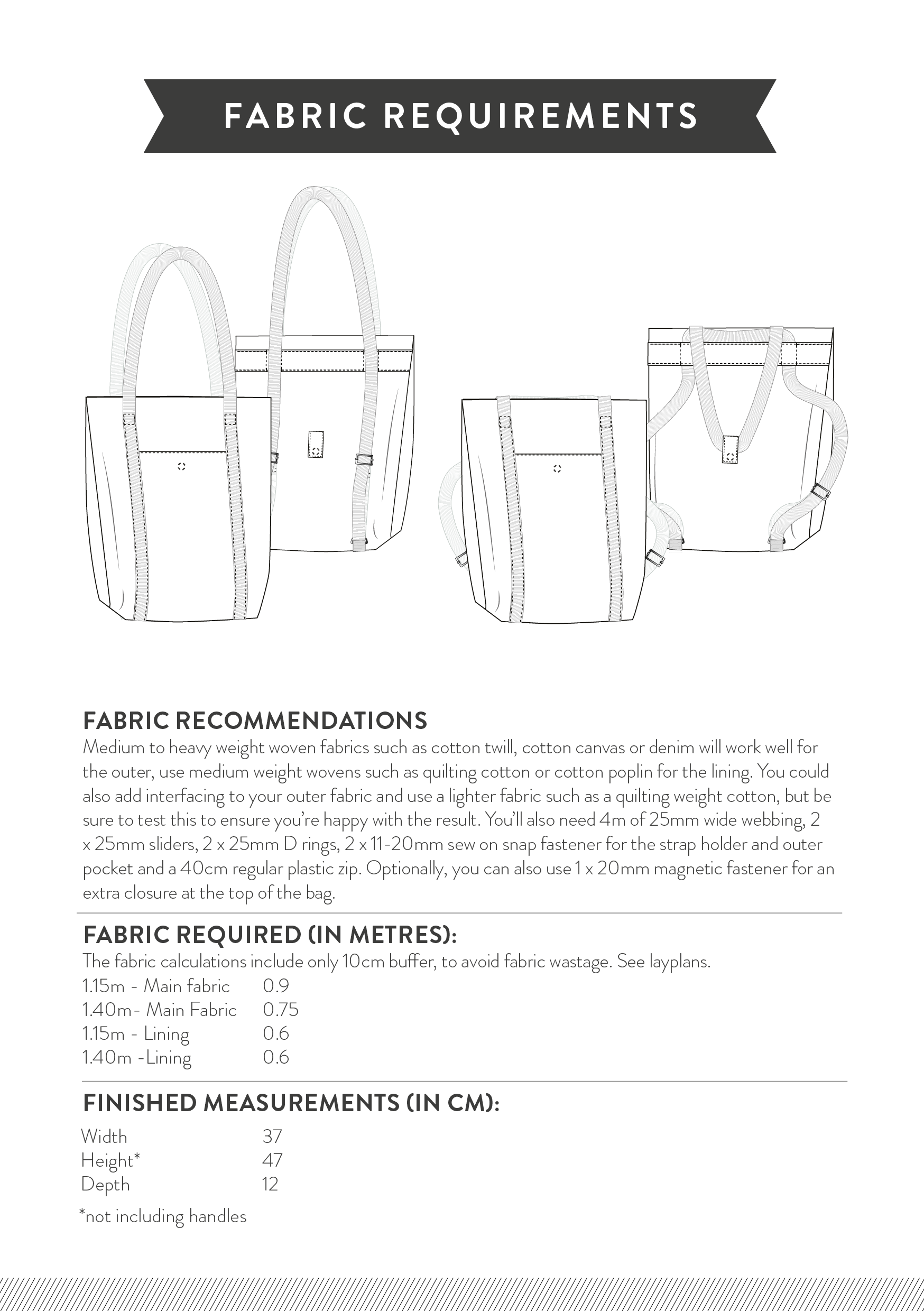 Pattern Sizes & Fabric Requirements