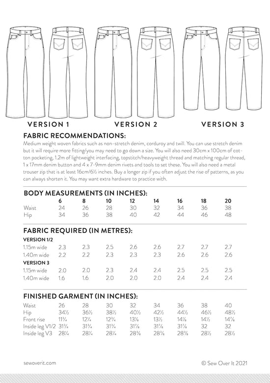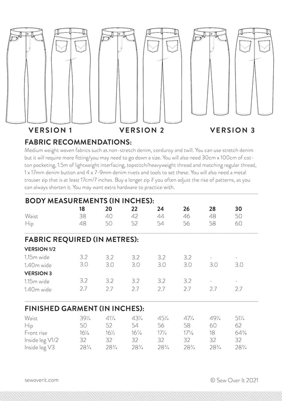 We recommend doing a toile so you can get the fit just right before you get stuck in with the construction and create your Ultimate Jeans.