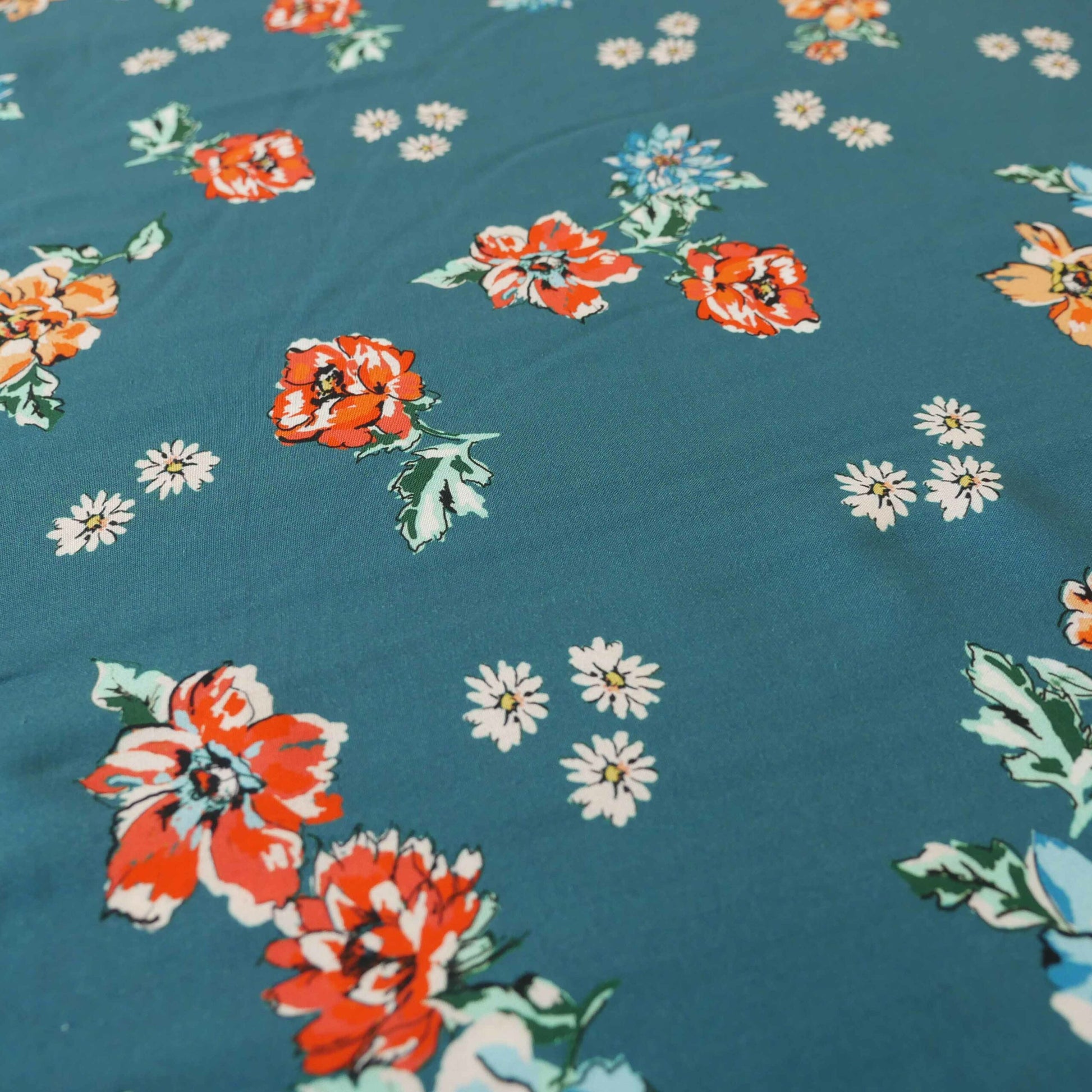 Washing instructions: As we can’t test wash all of our fabrics we recommend cutting a small square and testing your washing conditions. If you measure your fabric before and after washing you will be able to determine whether any shrinkage has taken place. Likely washing conditions for a viscose are 30°C. We also recommend washing with a colour catcher in the fabrics first wash.