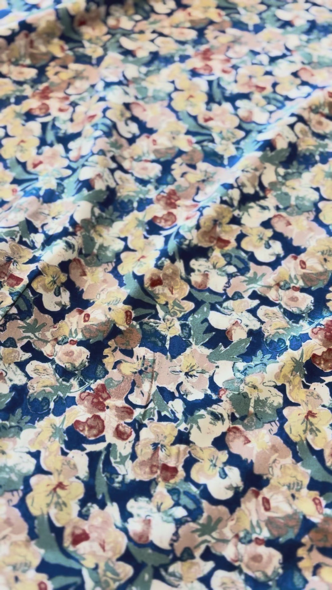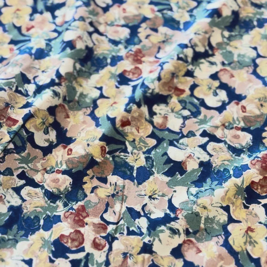 This is a Viscose Twill fabric with a lovely weight and a pretty floral print on a navy background - perfect for many of our dress patterns!